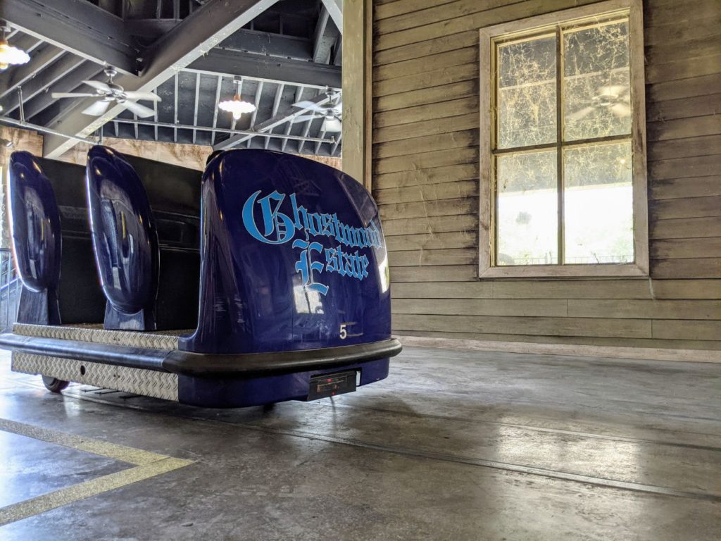 Ghostwood Estate is a reasonably high-tech haunted house ride. As it stands when I rode, it mostly relies on spooky atmosphere than jump scares. Reading up on it now, it looks like there used to be a pre-show and you caught ghosts with a laser blaster. All of that was gone during my visit, so maybe it’s scaled back due to Covid. Another 4D ride nearby is still completely shut due to the virus.