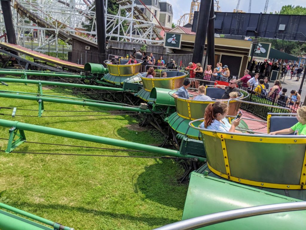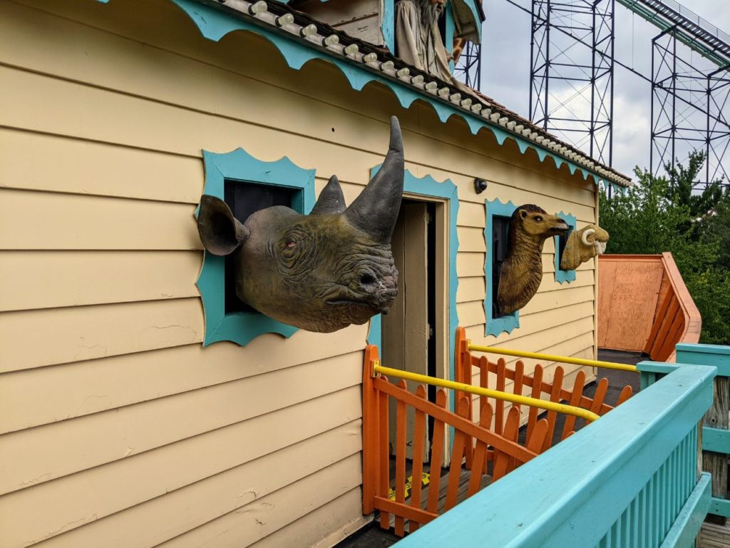 This is a kid’s coaster, a slight oval themed to its bigger cousin, Phantom’s Revenge. This one is tucked into the corner of Kiddieland. I confess I didn’t ride it.