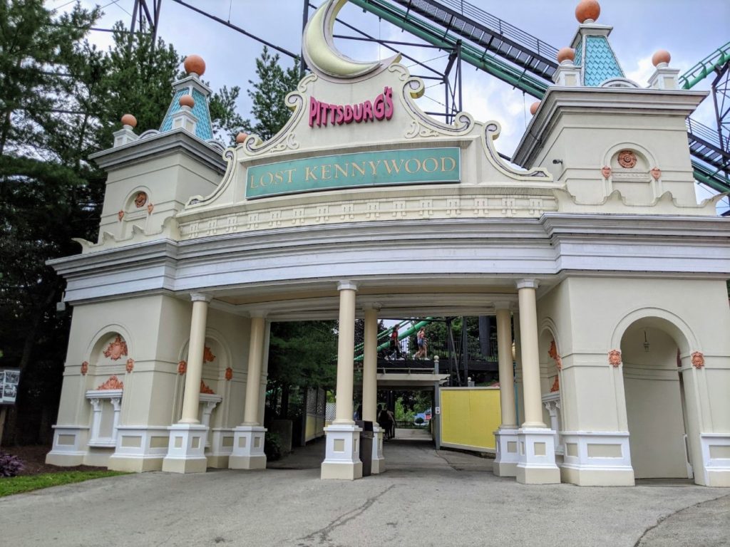 Kennywood in Pittsburgh, Pennsylvania (sister park to Idlewild and Sandcastle Waterpark) is a fantastic smaller amusement park with a lot of history! Opened as a trolly park in 1899 on a bluff above the Monongahela River, it used to be a break from the city. Today, industrial creep has caught up, and the park feels like it’s pretty much downtown. In fact, it’s right on the side of the highway, with parking lots and the entrance on one side with a tunnel leading under the highway to the park on the other.
