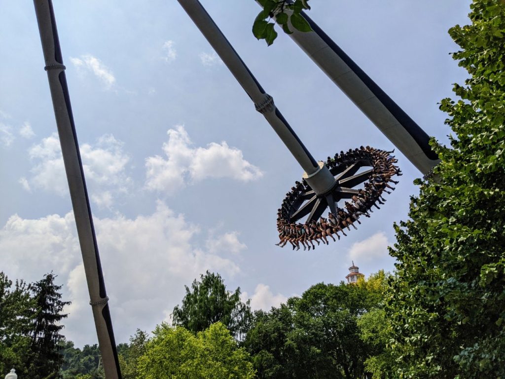 The best non-coaster ride at the park is the Aero 360 – two swinging Kennywood signs that take you up and over several times and in both directions! Most seats face each other, but I like best the seats on each end so you can see the view (and not some people you don’t know.) It’s luck of the draw, however, you can’t wait for those seats.