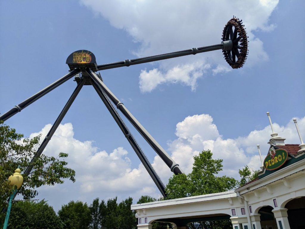 Black Widow is a large swinging pendulum-style ride that’s always fun. It’s got great height and a decently long ride time. There’s even a little spider cave to walk through at the entrance. The ride eats 40 people at a time, but loading time is slow. You can’t pull the restraint down until they tell you to, so one person can delay the ride for several minutes. They also go around making sure you aren’t carrying any loose items. The whole process can take quite a while. The ride operators on my visit were pretty over it.