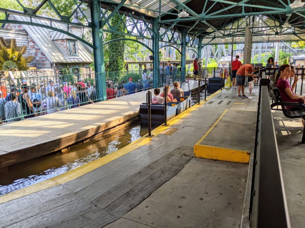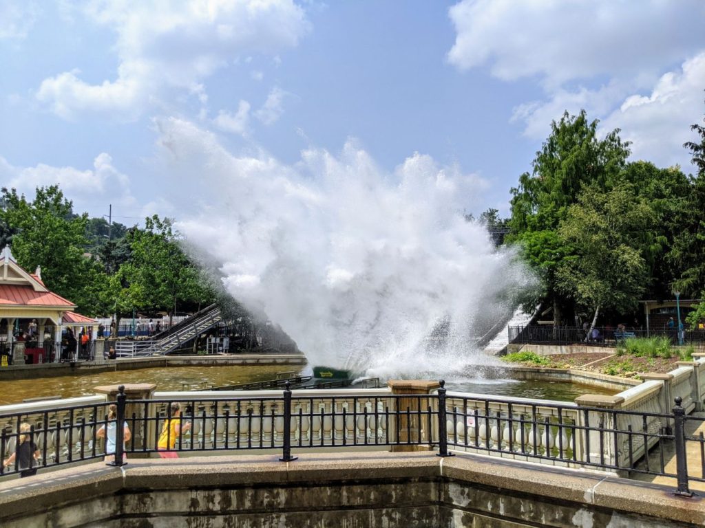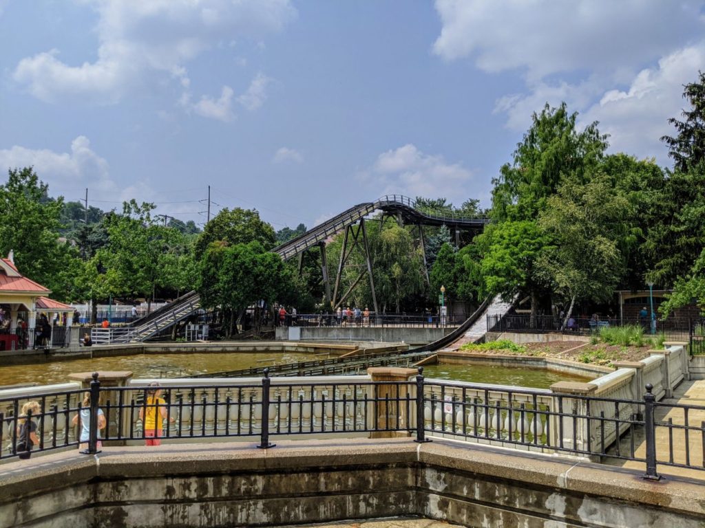 I’ll put Kennywood’s two water rides into the same slot, though I rode neither. The day wasn’t hot, and I didn’t feel like getting wet! Pittsburg Plunge (using the older spelling of Pittsburgh) is a straightforward Shoot the Chute raft ride, meant to get you soaking wet. The nicest thing about this version is that it splashes down into a beautiful fountain area in the middle of Lost Kennywood.