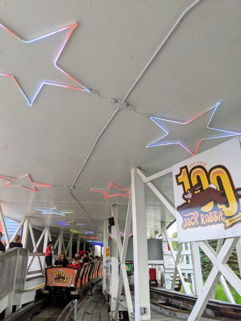 The Jack Rabbit from 1920 is one of the oldest operating coasters in the world! And it’s still fun, with a simple double-oval layout built into the hillside. The double-drop into the ravine is still thrilling after 100 years, and the tunnel at the far end (that you go through before you even get to the lift hill) is a nice touch.