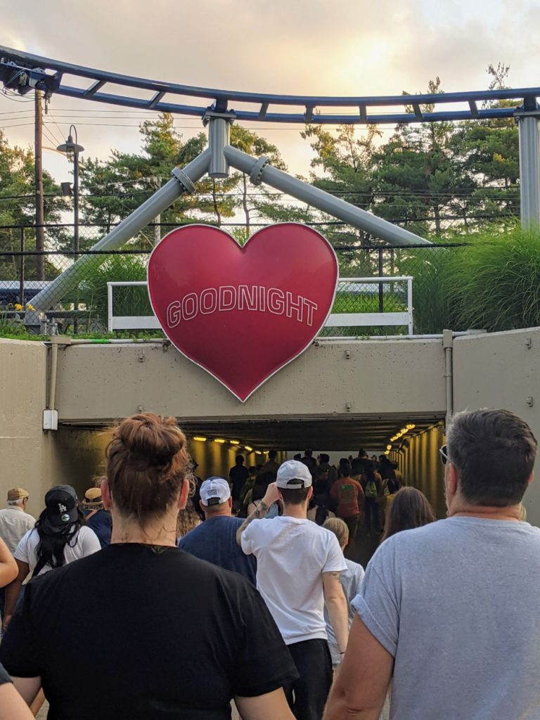 Kennywood tells you goodnight with love before you head into the tunnel to the parking lots