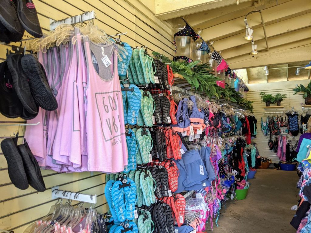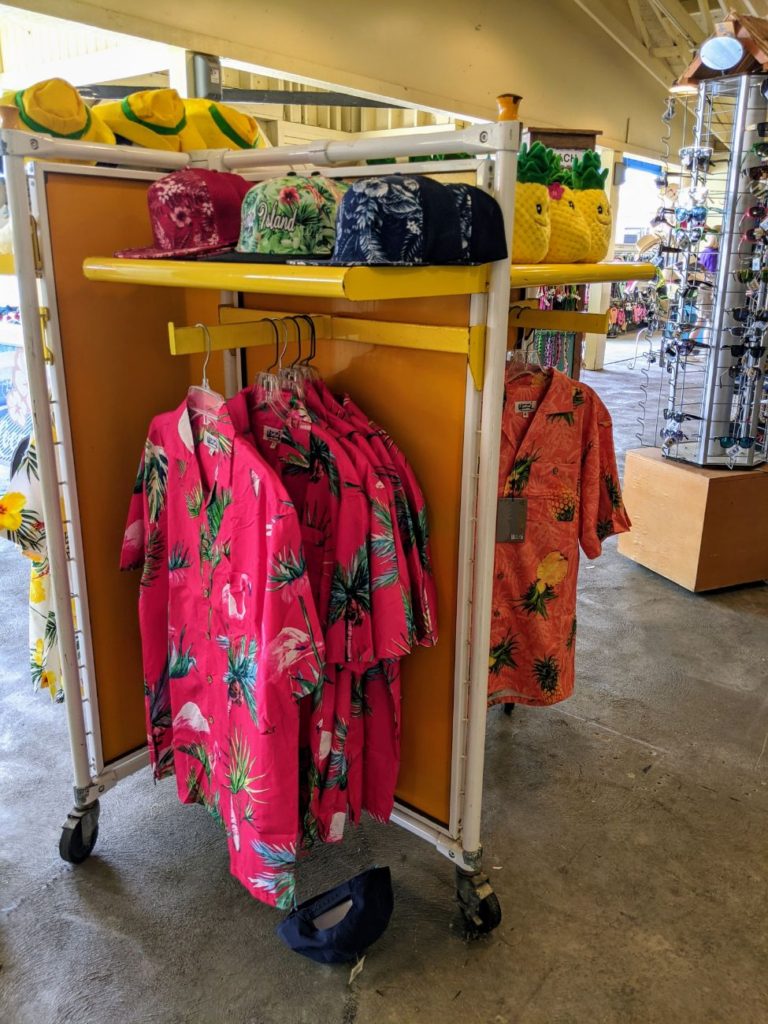 For souvenirs and anything you forgot for your day, there’s one big shop selling t-shirts, sunscreen, flip flops, sunglasses, toys, and even Hawaiian shirts.