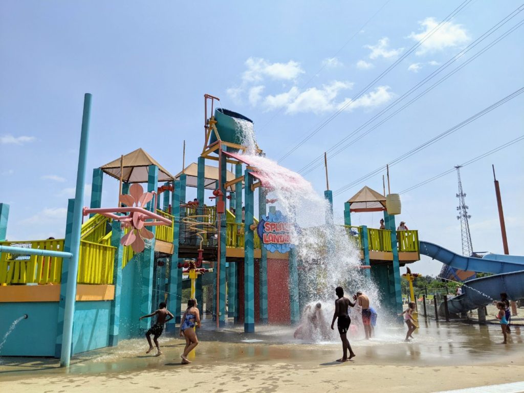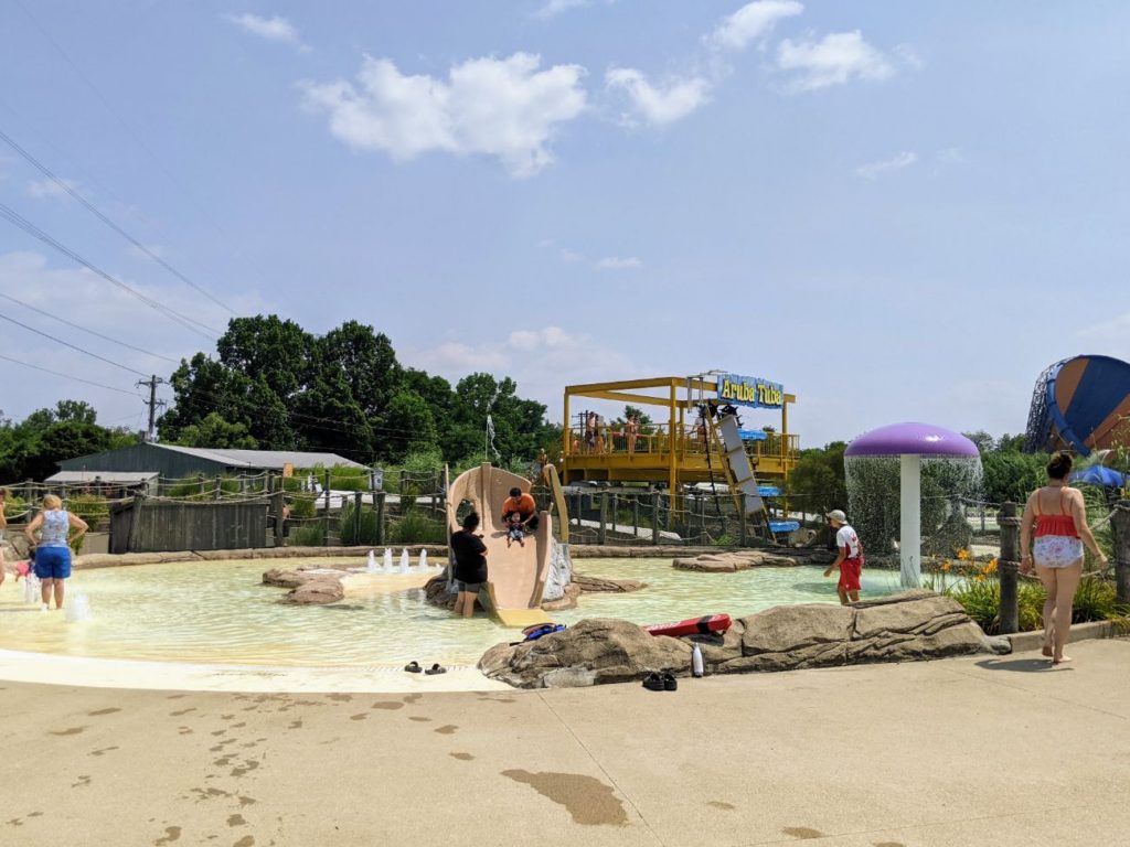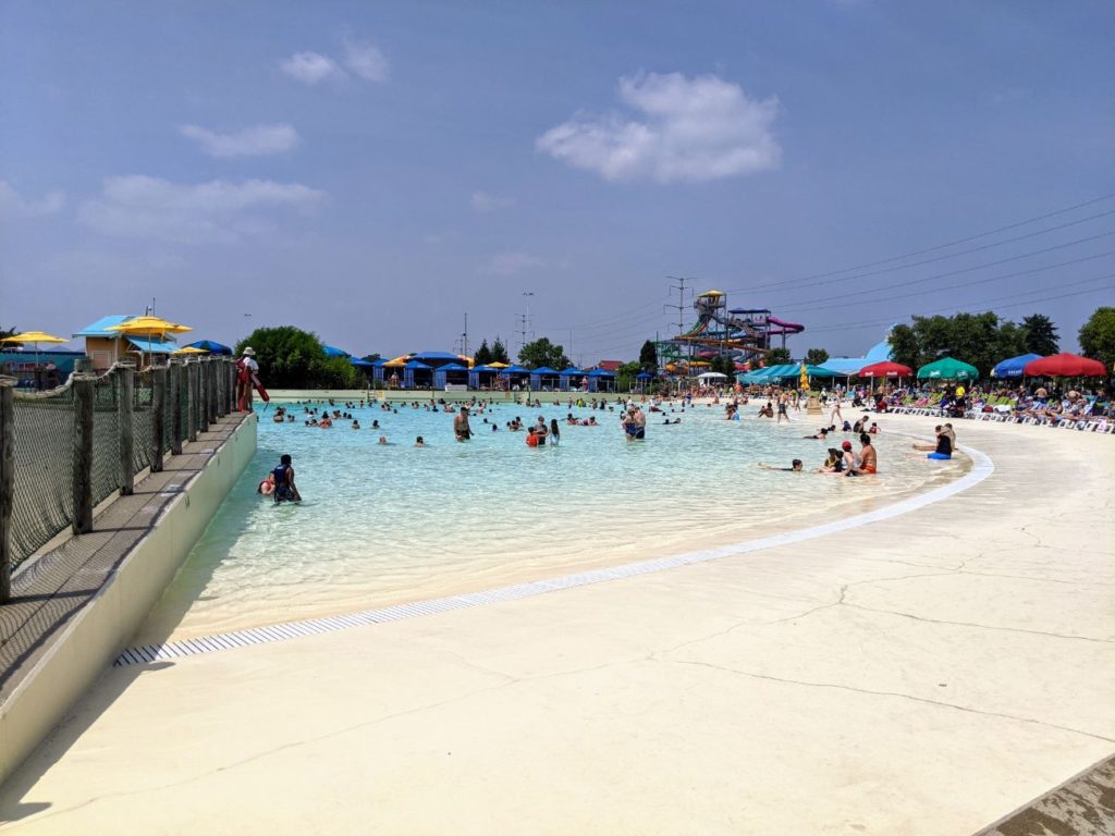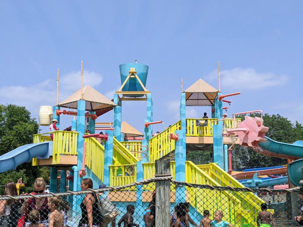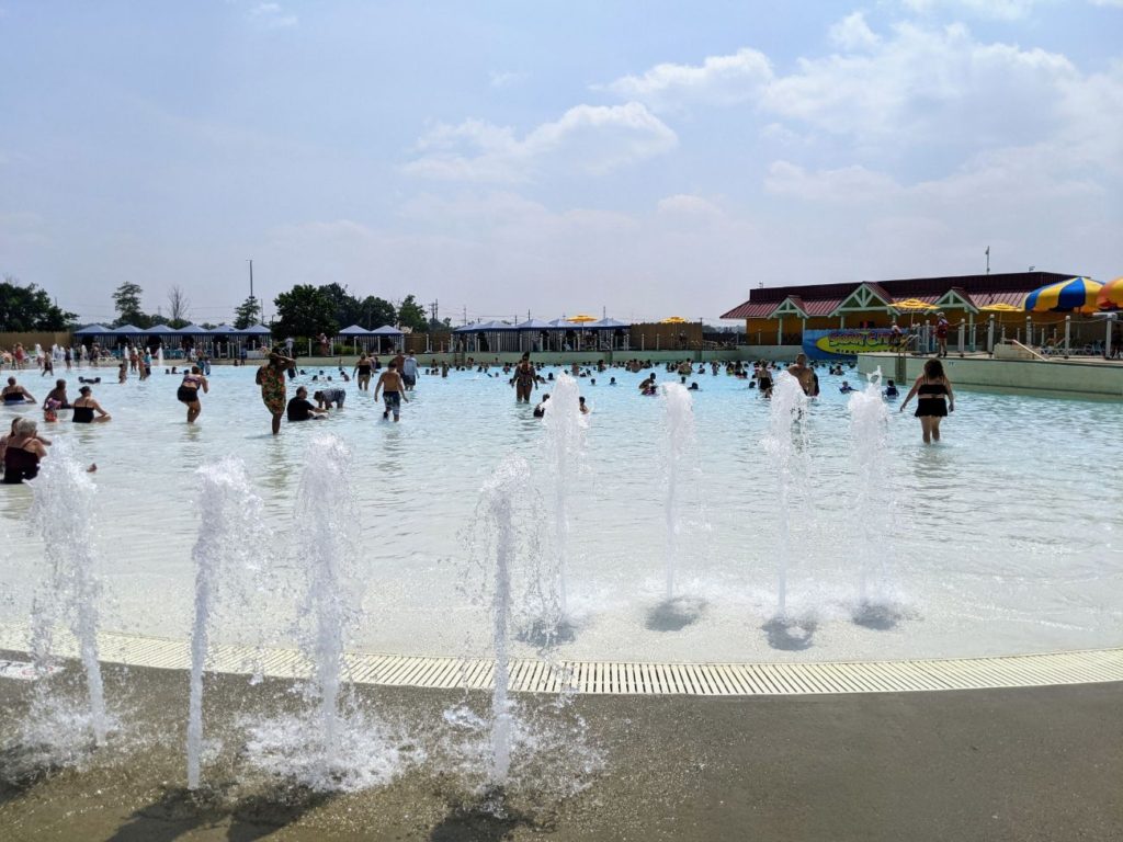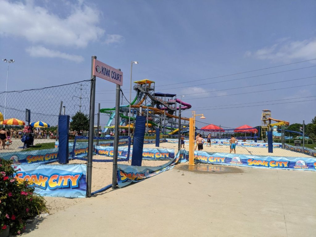 Besides the slides, there are two wave pools, Tidal Wave Bay and Breakers Bay, pretty much right next to each other. There’s a large sand volleyball area, including a mini version for kids! And one of the best lazy rivers I’ve seen is the Splash River, with tons of get-wet elements like waterfalls, dump buckets, and water sprays.