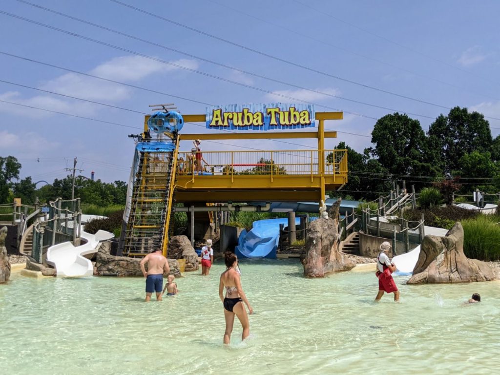 There are four separate water play areas just for kiddos. Aruba Tuba is a fun kid’s slide area with Castaway Cove next door for the smallest splashers. And Coconut Cove is a pretty lagoon-style pool for families right in front of Splash Landing dump-tower kid’s complex. This area was PACKED the Friday I was there.