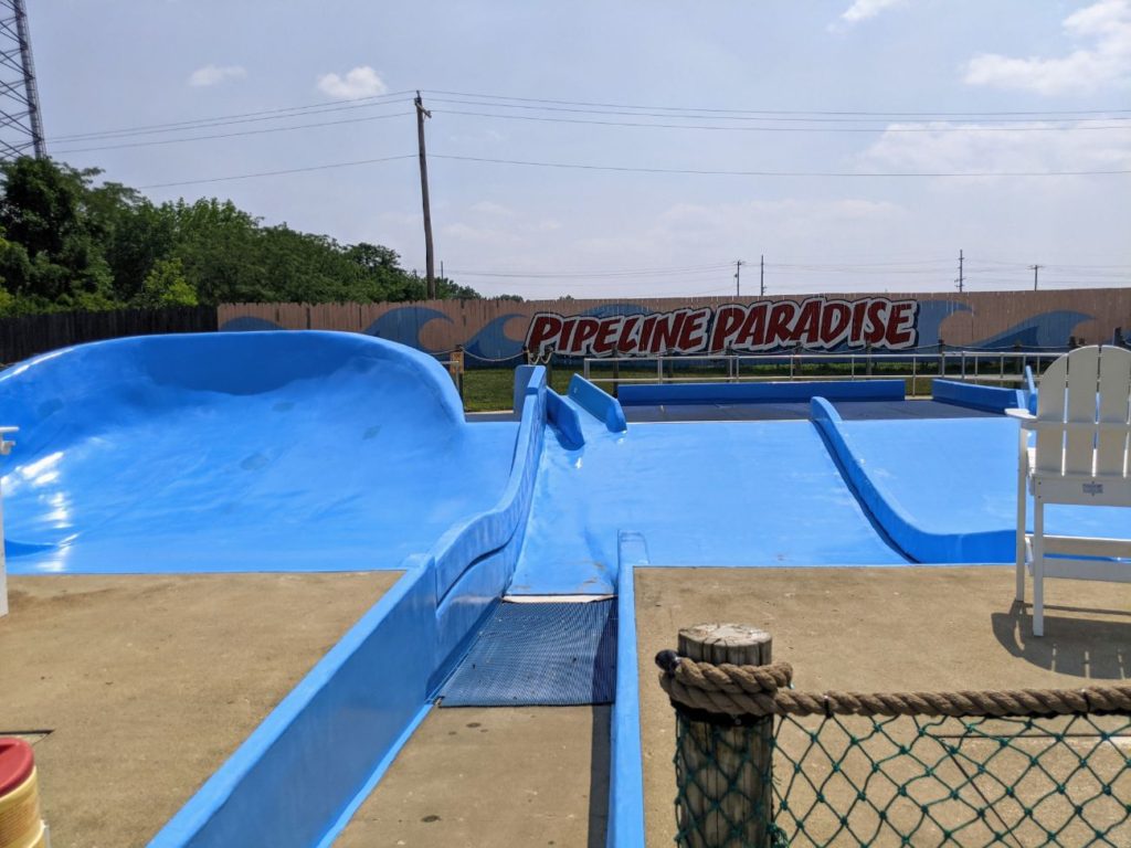Behind the lower wave pool is Pipeline Paradise, a surfing simulator. When it’s working, that is. It wasn’t operating on my visit.