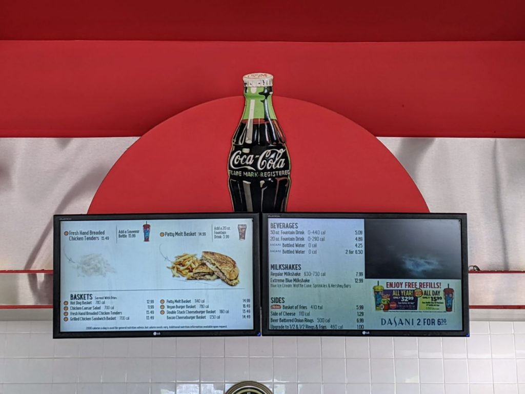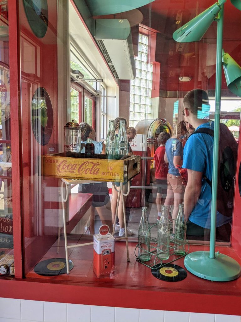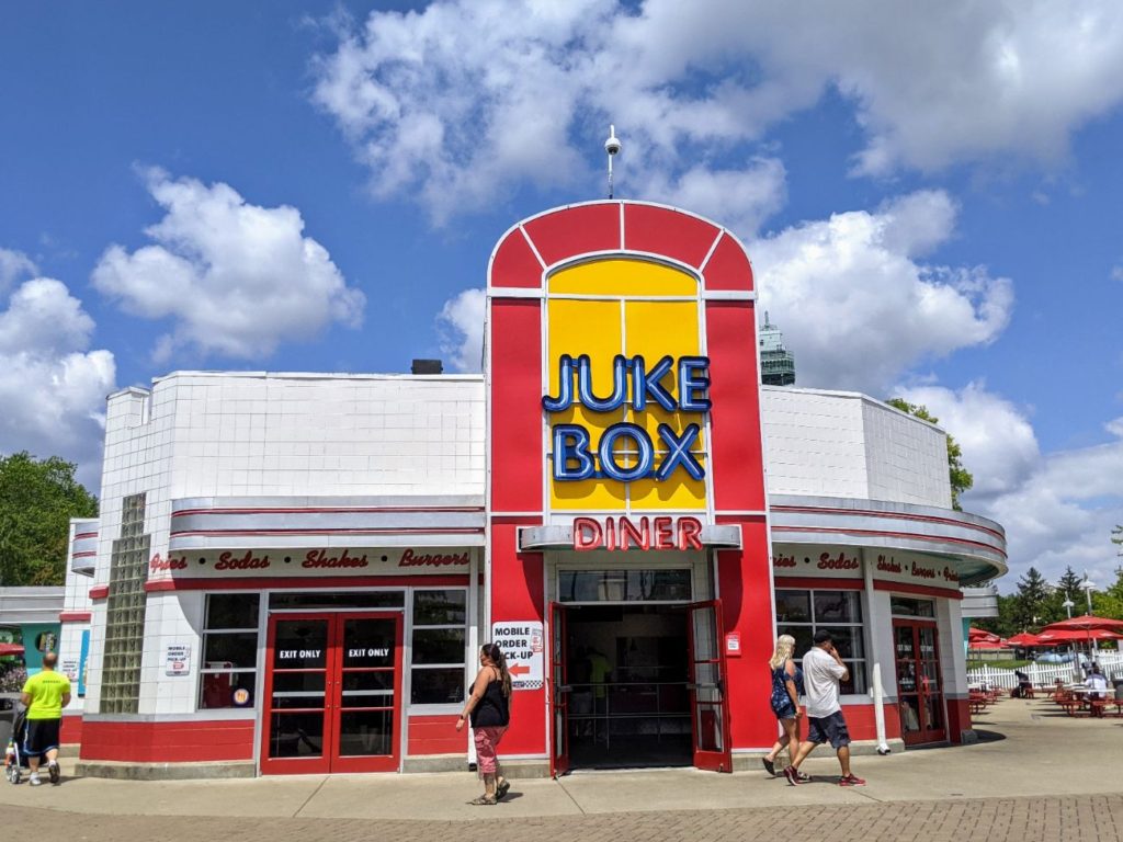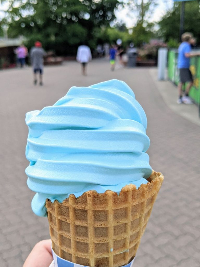 Speaking of dining options, let’s talk about food in the rest of Kings Island. I had several very terrible meals at Kings Island. By far the worst food as compared to other parks I’ve been to all summer! My first meal at Jukebox Diner took so long for the line, for preparation, and in the end, I found my patty melt to be inedible. Even the fries had way too much salt. And this counter-service spot took over an hour out of my day! I bought blue ice cream on the other side of the diner, which made up for it a little.
