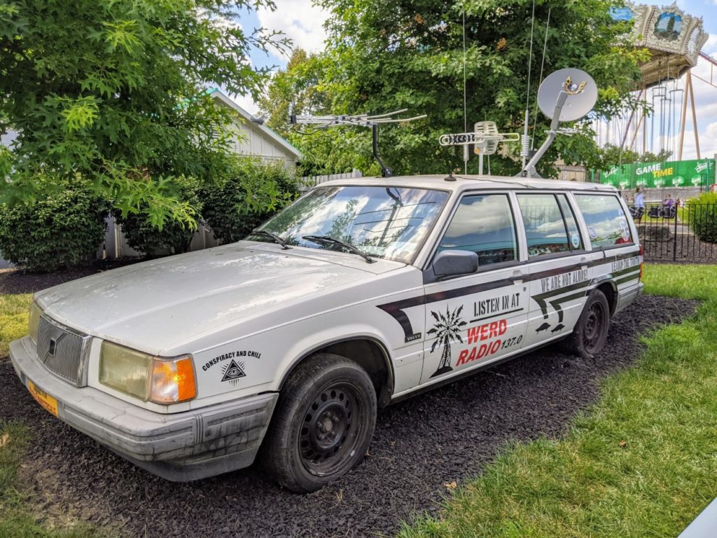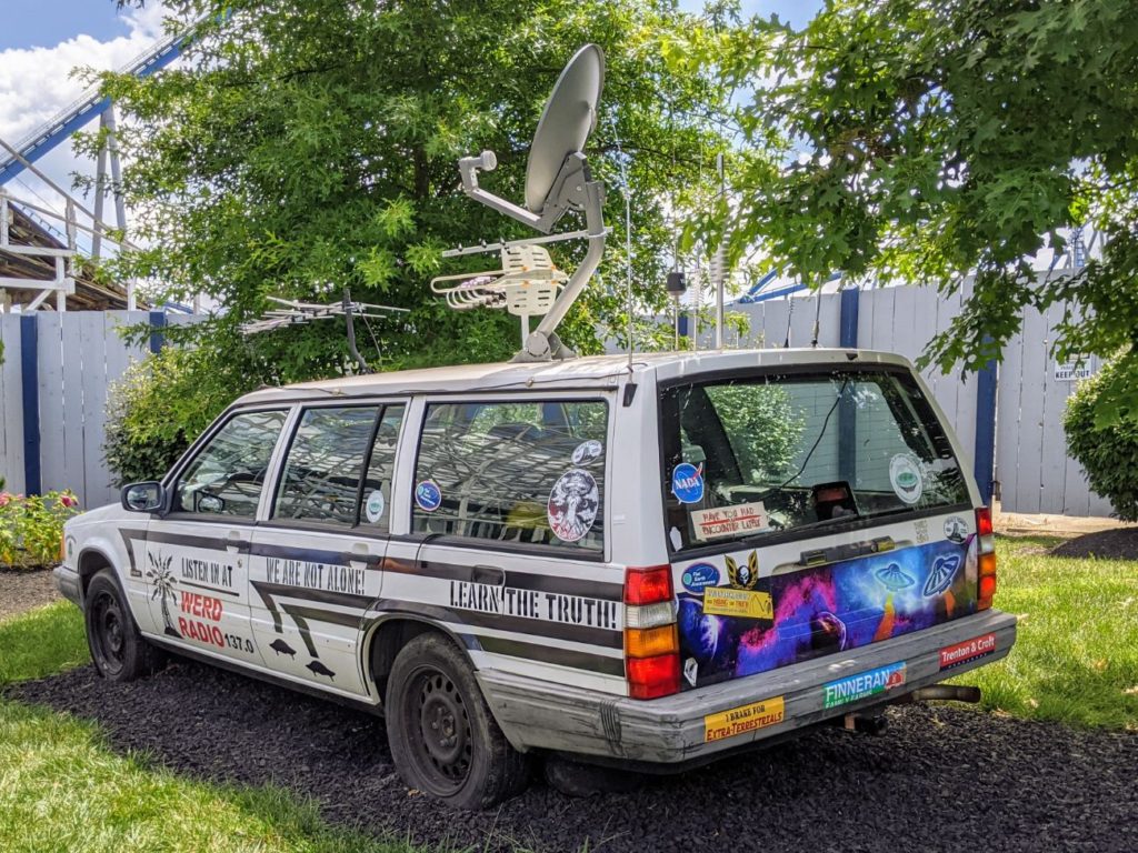 a car playing “conspiracy theory” radio