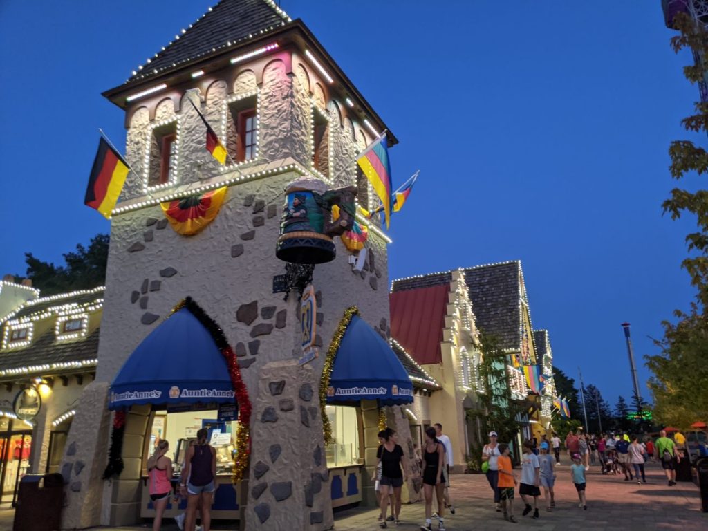 Similar to the typical “main street” entrance that Disney popularized, Kings Island has an international street. As you browse the shops and food offerings, the storefronts resemble architecture from Germany, Switzerland, England, Spain, and France. It looks extra lovely at night when the whole street lights up, as well as the fountain down the middle. It’s definitely one of the prettier parks in the Cedar Fair family, chiefly due to International Street.