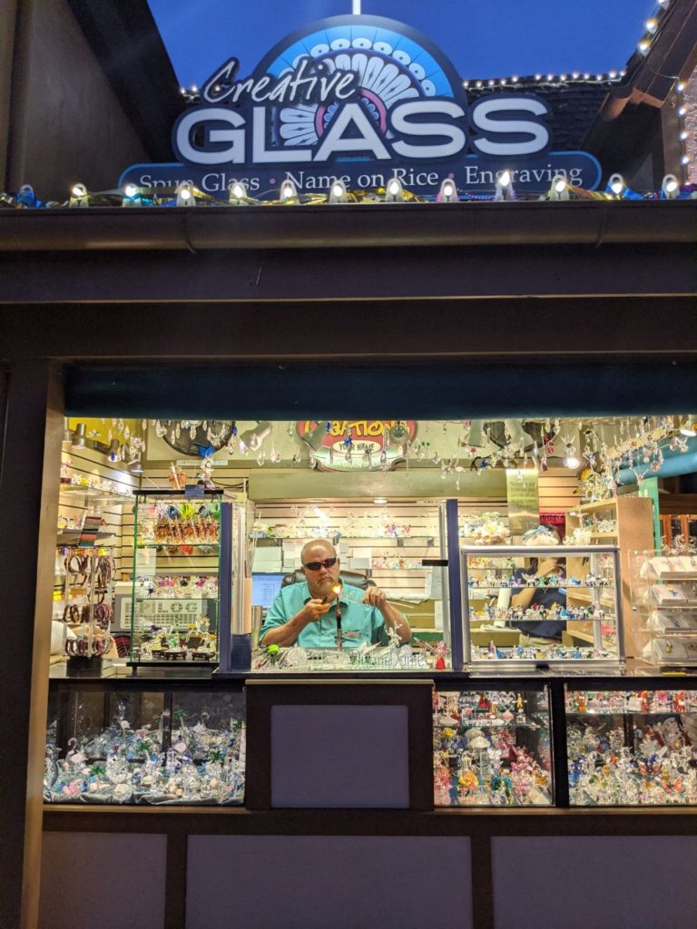the glass shop sparkels at night