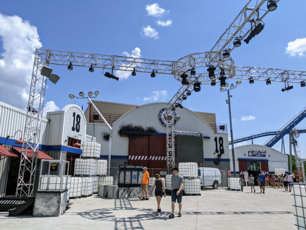 Tucked behind Coney Mall is Area 72, with two of Kings Island’s best rides. By walking under the tracks of The Racer, you enter a top-secret testing facility with guard gates and military-style hangars. In one hangar is Flight of Fear, a very popular indoor coaster. Through another is the world-class Orion, the best roller coaster in the park.