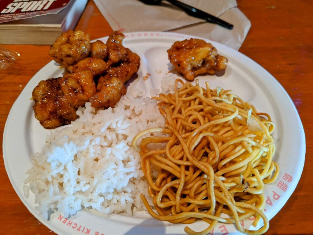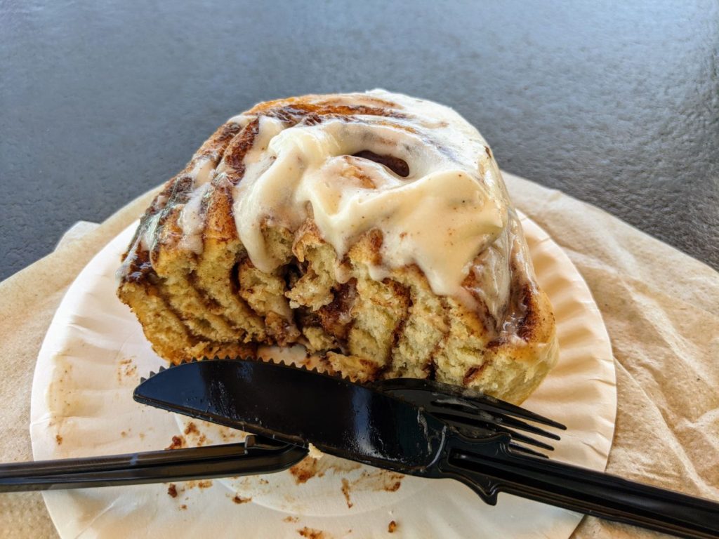 The next day, I stuck to third-party restaurants and ate at Cinnabon (it’s hard to mess that up!) and the Panda Express inside Festhaus. But I also had BBQ fries at the Potato Works in Rivertown, and that was pretty good too and a very generous serving. My grilled shrimp at Soak City was also good, if not super filling.