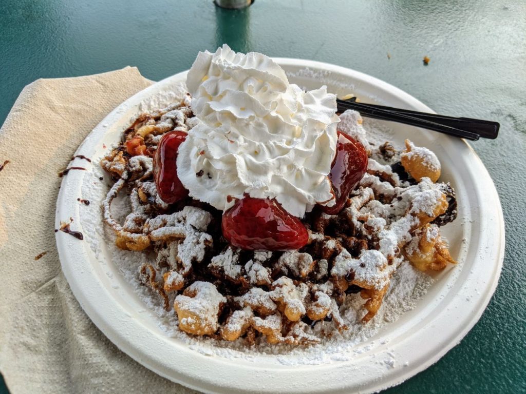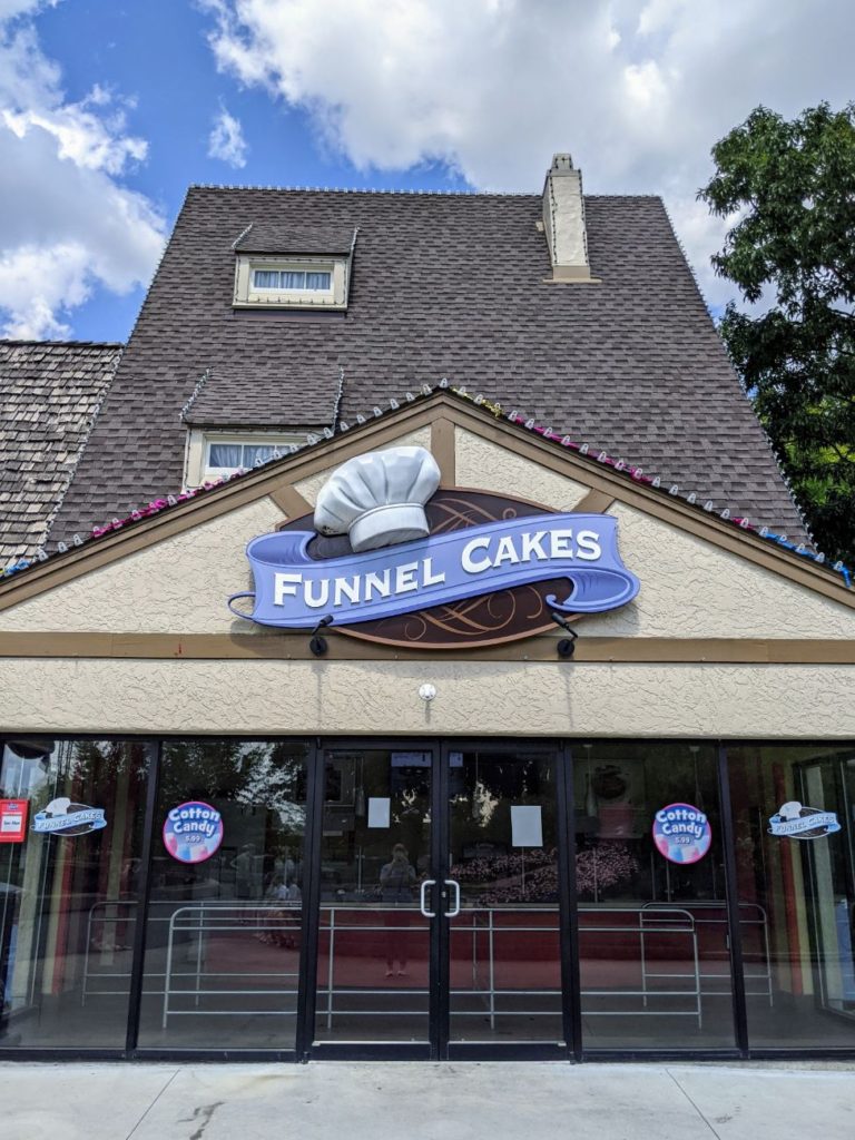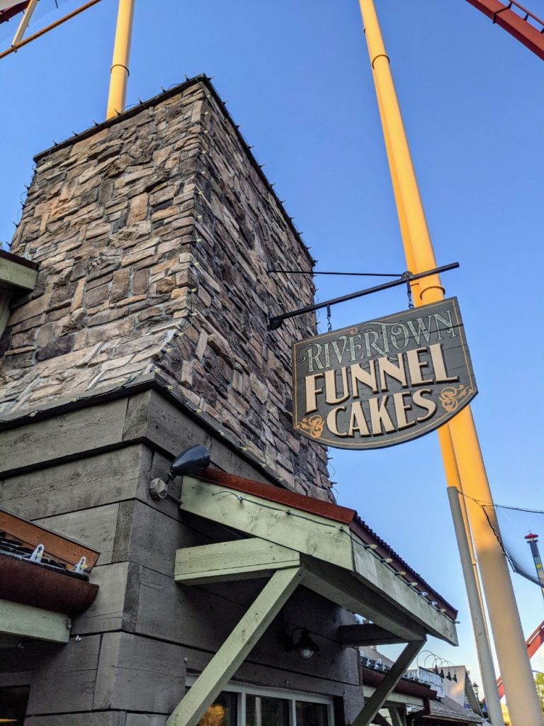 On another day, I stopped at Rivertown Funnel Cakes, and the funnel cake I received was pre-made, cold, and burnt. I ended up just eating the strawberries and whipped cream off the top and leaving the rest! I think almost all the issues can be summed up with the struggles with staffing and probably poor training. But goodness. I had one awful day of eating at Kings Island.