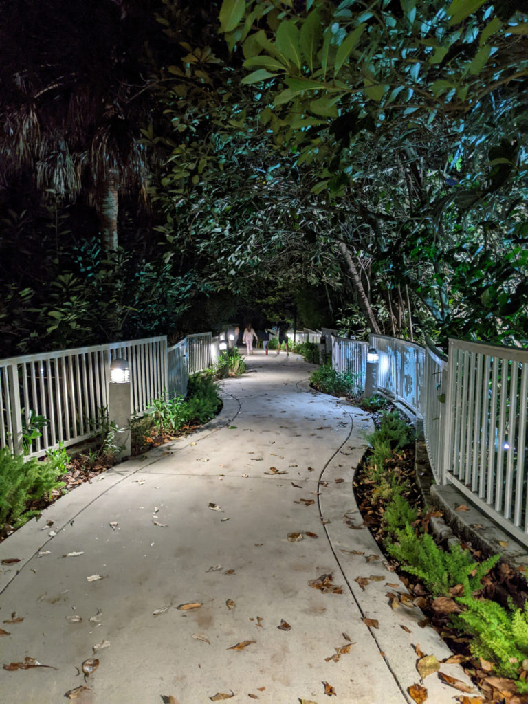 In the other direction, before you cross the bridge towards Islands of Adventure, sort of tucked beside Margaritaville is the other path. Walking in this direction, you first come to the Royal Pacific Resort. Then much farther down, the sidewalk ends behind the Cabana Bay Resort. In this area are Cabana Bay, Adventura hotel, and Sapphire Falls Resort. From Sapphire Falls, you can take a boat back to City Walk. (And this plan isn’t just for Christmastime – it works anytime you want to walk around these beautiful hotels. It can’t be just me who enjoys hospitality design.)