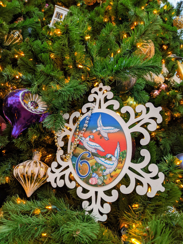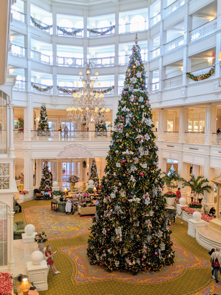 For a more massive tree, check out the one at the Grand Floridian. The grand lobby accommodates this 40-foot tree easily. In keeping with the resort, it’s decorated in victorian-style ornaments, from classic glass drops to velvet bows, birdcages, and wooden figures. Look closely, and you’ll find large medalions featuring each of the 12 days of Christmas.