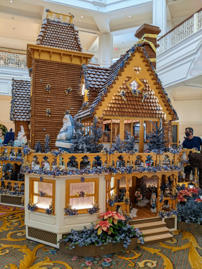 There used to be a Mary Blair-inspired gingerbread display inside as well, but that isn’t up either. I’m not sure if that’s a Covid thing or not. I did find this super-cute Contemporary gingerbread house with it’s own white chocolate monorail that you can purchase.