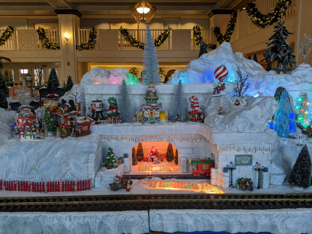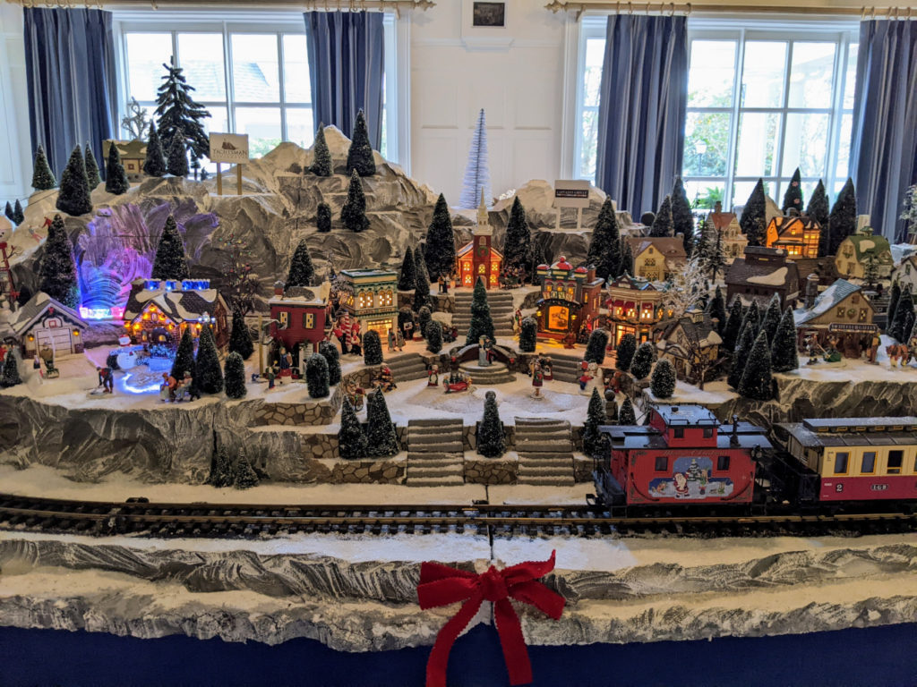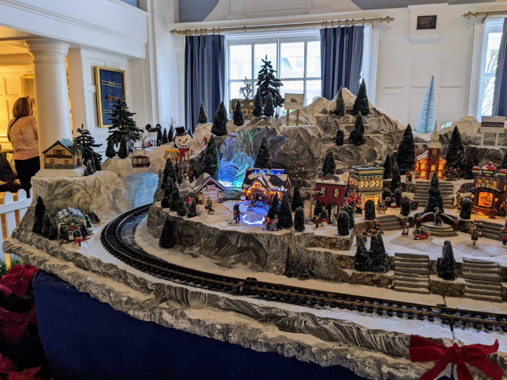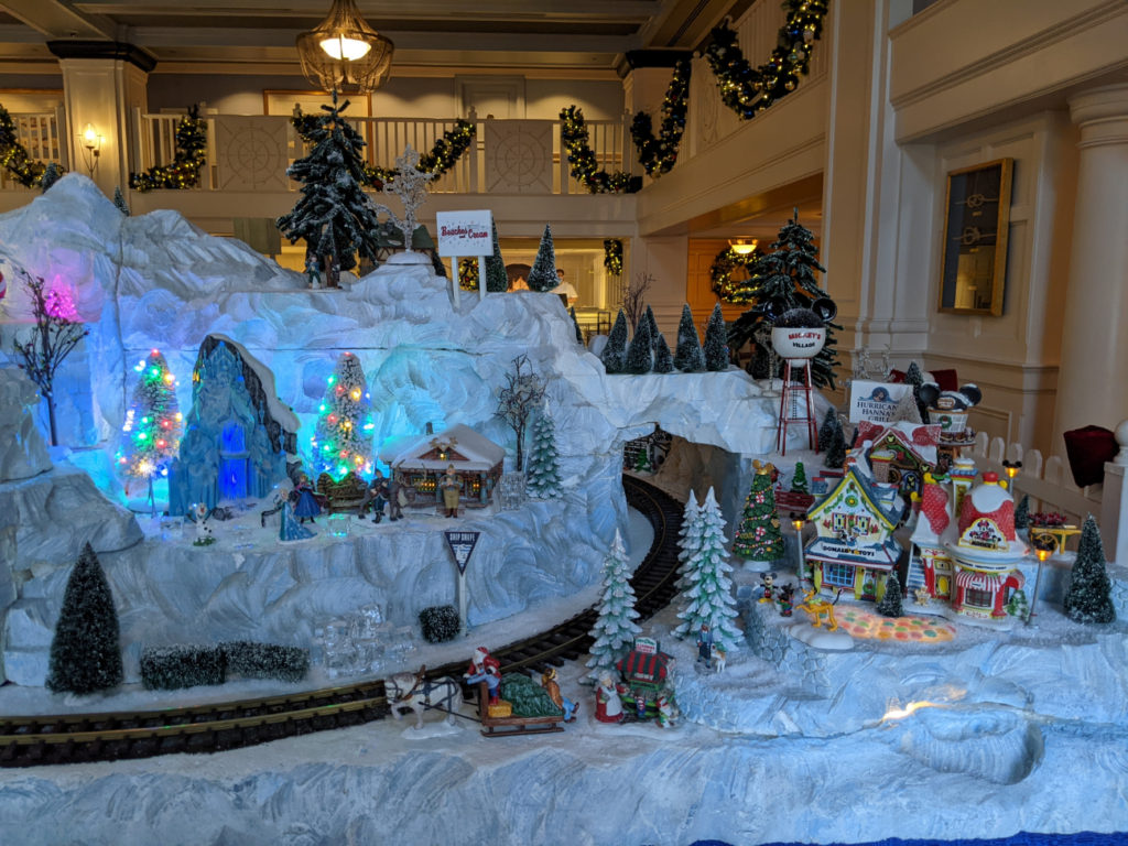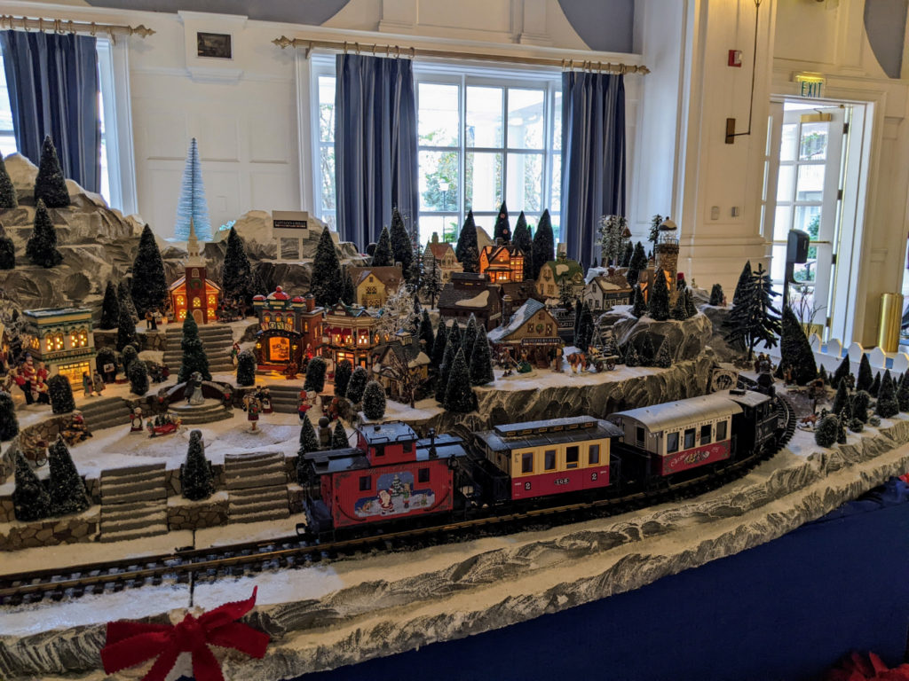 On the Yacht Club side, instead of more gingerbread, there is a huge model train display.