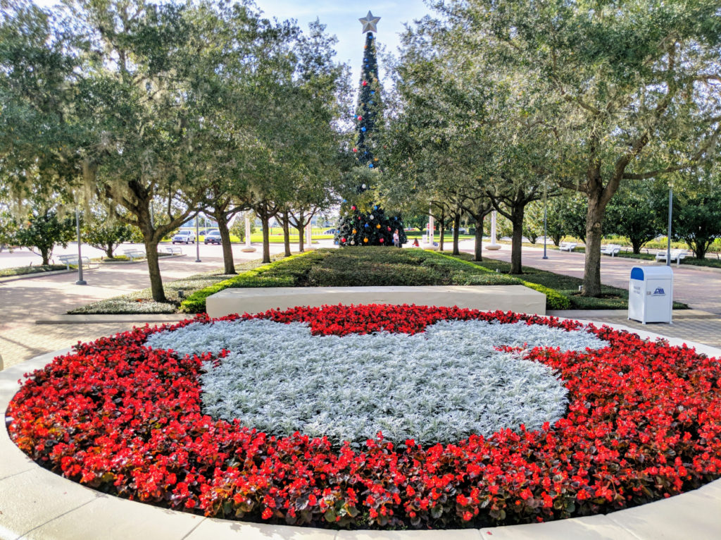 I was surprised to learn that the Contemporary Resort doesn’t have an indoor Christmas tree. The only Christmas tree you’ll find is a huge tree out outside the resort. The coolest thing about this tree is that each huge ornament and the star at the top light up at night. (You can see it really well from the monorail. I saw it but was not close enough to the window to take a picture.)