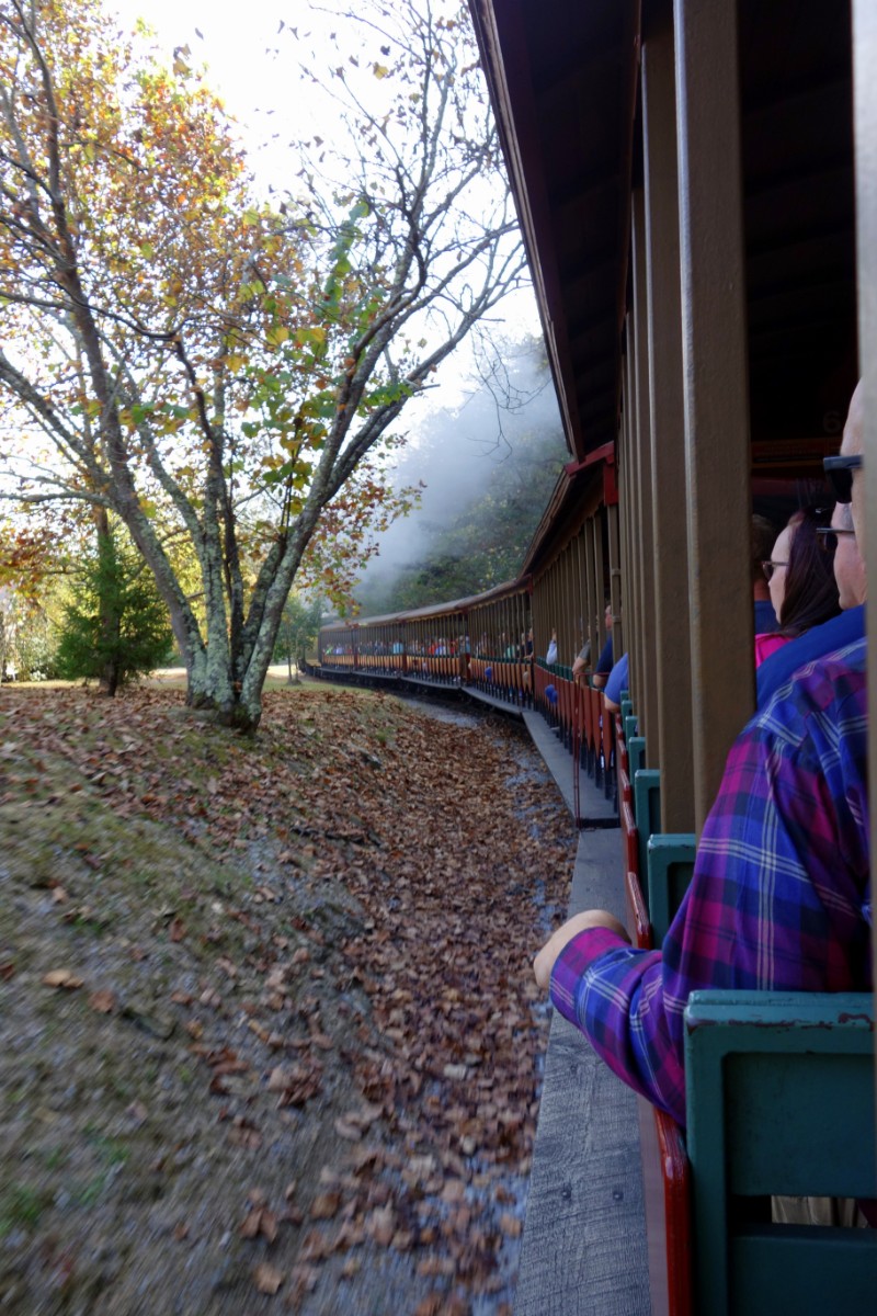 I rode some of my favorites, the Thunderhead, the steam train, the Wild Eagle, then headed out into the Old Mill area for dinner. I couldn’t get into my favorite, the Pottery House Grill, within a reasonable amount of time (which isn’t unusual) but I found that I could get that wonderful loaded potato soup at the Kitchen Shop around the corner. I sat in nearby Patriot Park and ate my soup under a tree with beautiful fall foliage. Considering that I had traveled all the way to Canada to find fall color on this trip, it was kind of a nice reminder that sometimes what I’m looking for is right at home.