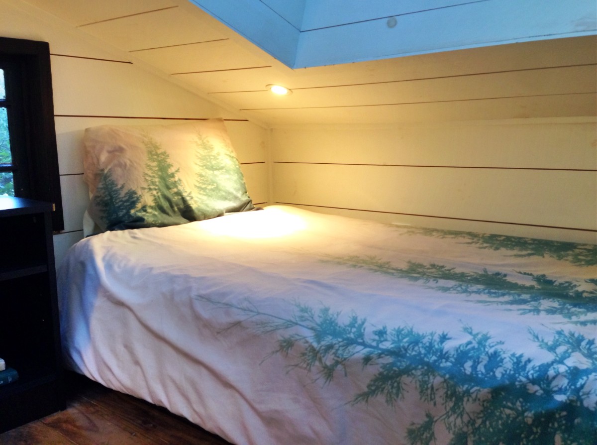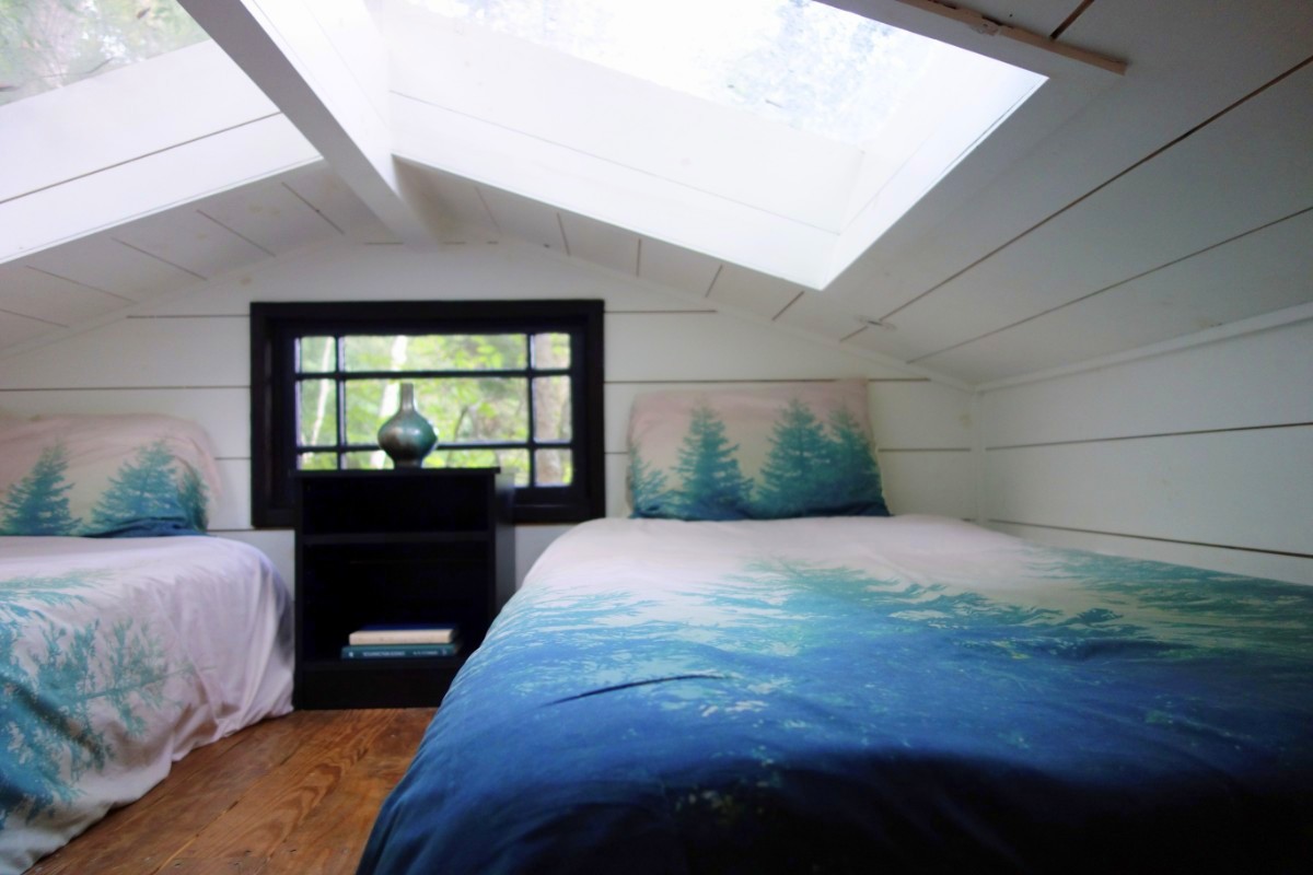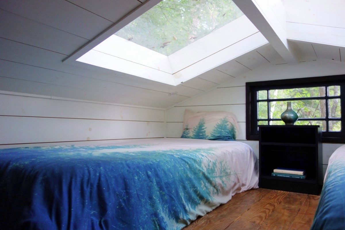 There is NOT room to stand up, however. Even sitting up in bed uses the space provided by the large skylights. Since Melissa won the contest, she slept in the queen bed. Katie and I slept up here.