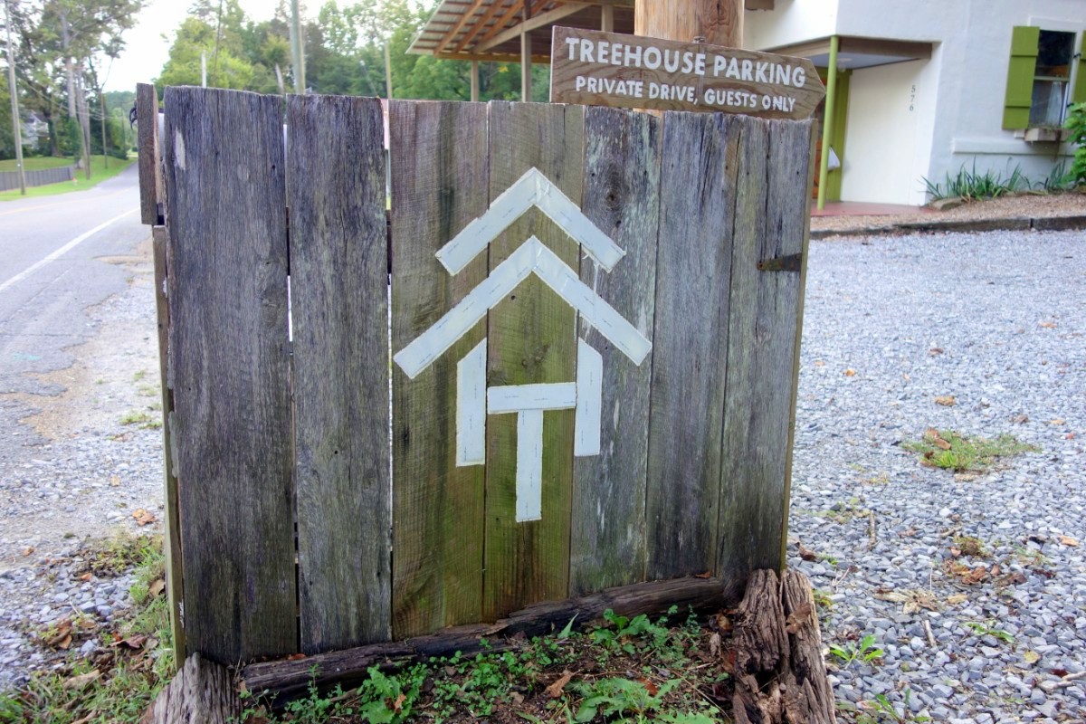 There’s a small wooden sign directing treehouse guests up the gravel driveway. Make sure you have your GPS on or you might miss it!