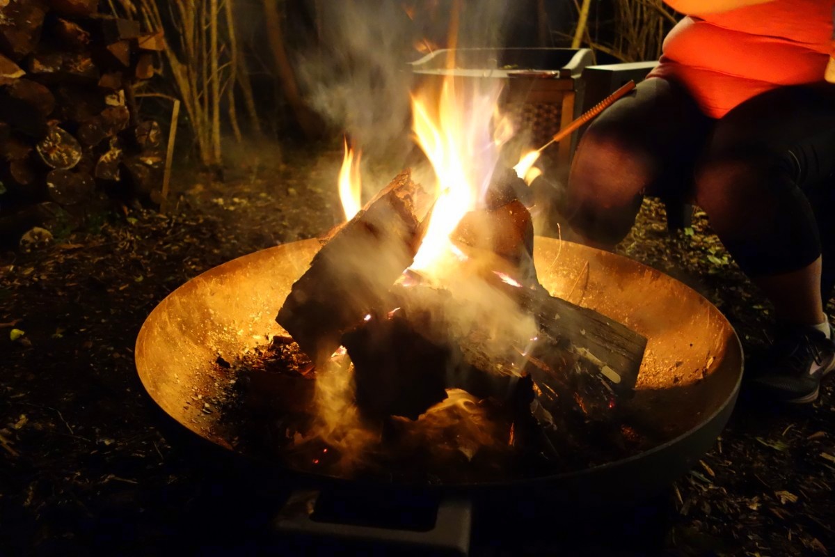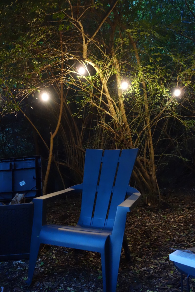 We ended up spending most of our evening down at the firepit. A path down below the back of the house leads to a park-style grill and four chairs around a metal firepit. Plenty of firewood is stacked around and a box contains kindling, charcoal, and a lighter.