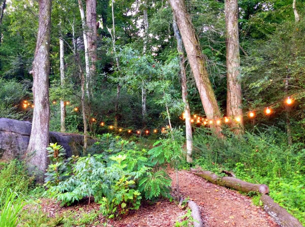 The path leading to the Elements treehouse doesn’t stop at the treehouse (although the lights do.) The path continues around some rocks and apparently goes all the way up to Rock City! That must be a climb, however. The treehouses are at the very bottom of the mountain and Rock City is at the very top. There does seem to be a stream nearby, and supposedly there is a waterfall not too far off.