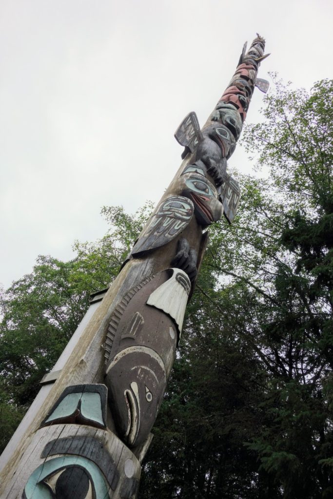 Ketchikan was an early stop for our ship–6:30 am-1 pm. And we didn’t really make off the ship until 9 am. Even so, we were able to take a bus to Totem Bight State Park for a look at the area’s rich concentration of totem poles.