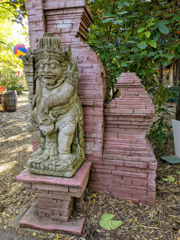 Rounding out this area is a flamingo yard and a macaw that wouldn’t quite come out of his little house.