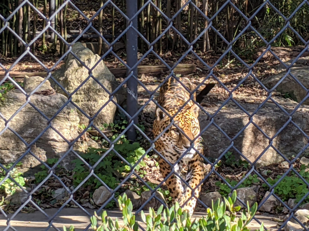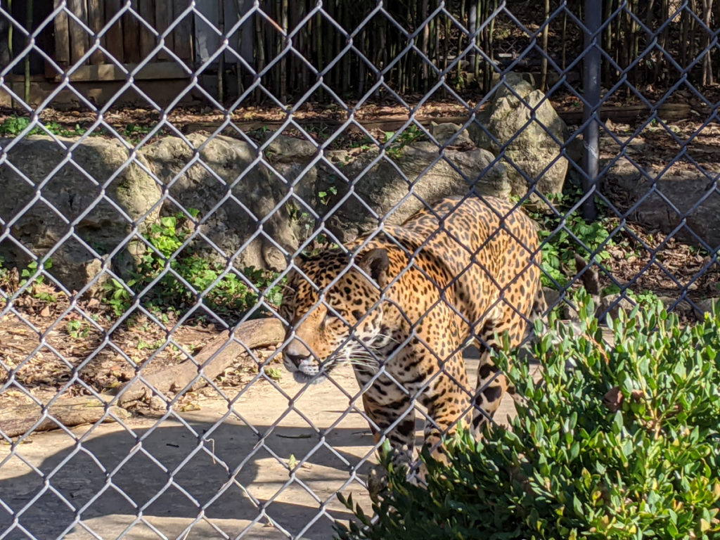 A pacing jaguar anchors the far end of the South American corridor. It’s about here that I’m realizing just how close you can get to the animals at the Louisville Zoo. Far enough away that you can’t stick a hand through the fence but close enough to get the feel of how big these animals are. I started to notice this especially with the puma and the jaguar.