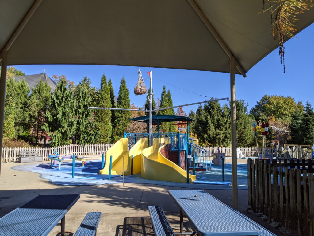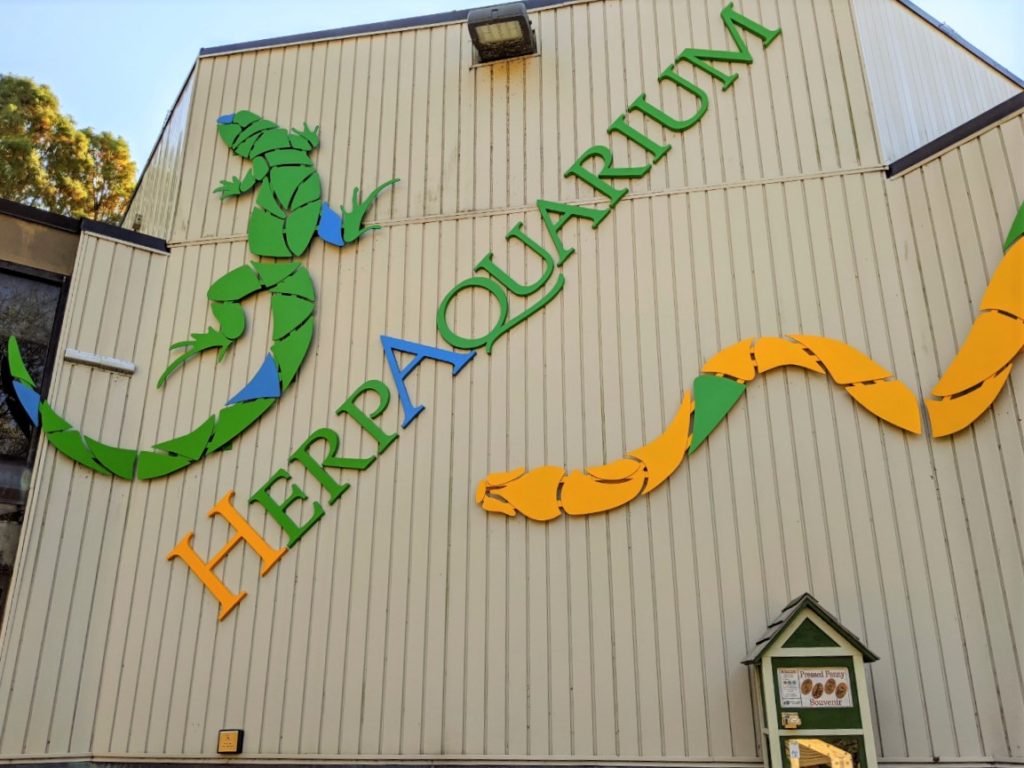 Also in this area is the HerpAquarium, currently closed. Inside (when it’s open) you’ll find snakes, reptiles, and bats, even a few piranhas. Basically, anything geared to give you the heebie-jeebies. Next to it is a ropes course called the Sky Trail. You can clip in and climb around for $10.50 or for only $5 on a weekday! There’s a toddler version too, for about half the price. It is seasonal, so it was closed on my visit. Also seasonal here is a BBQ stand by the side of a lake.