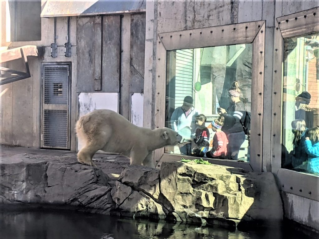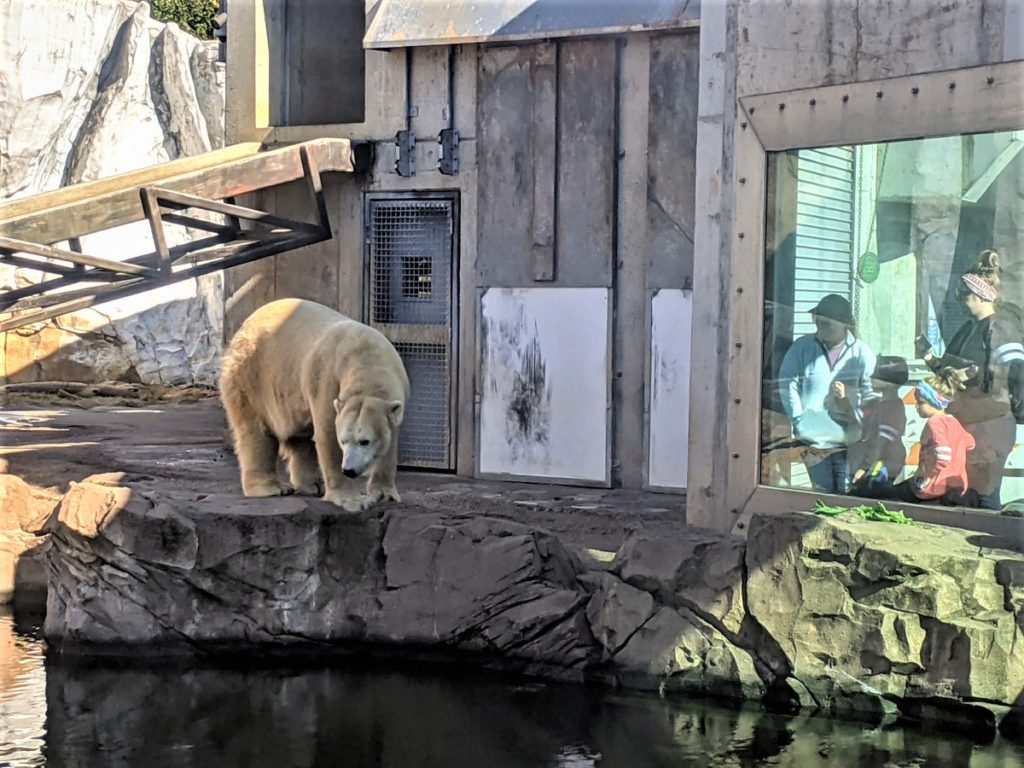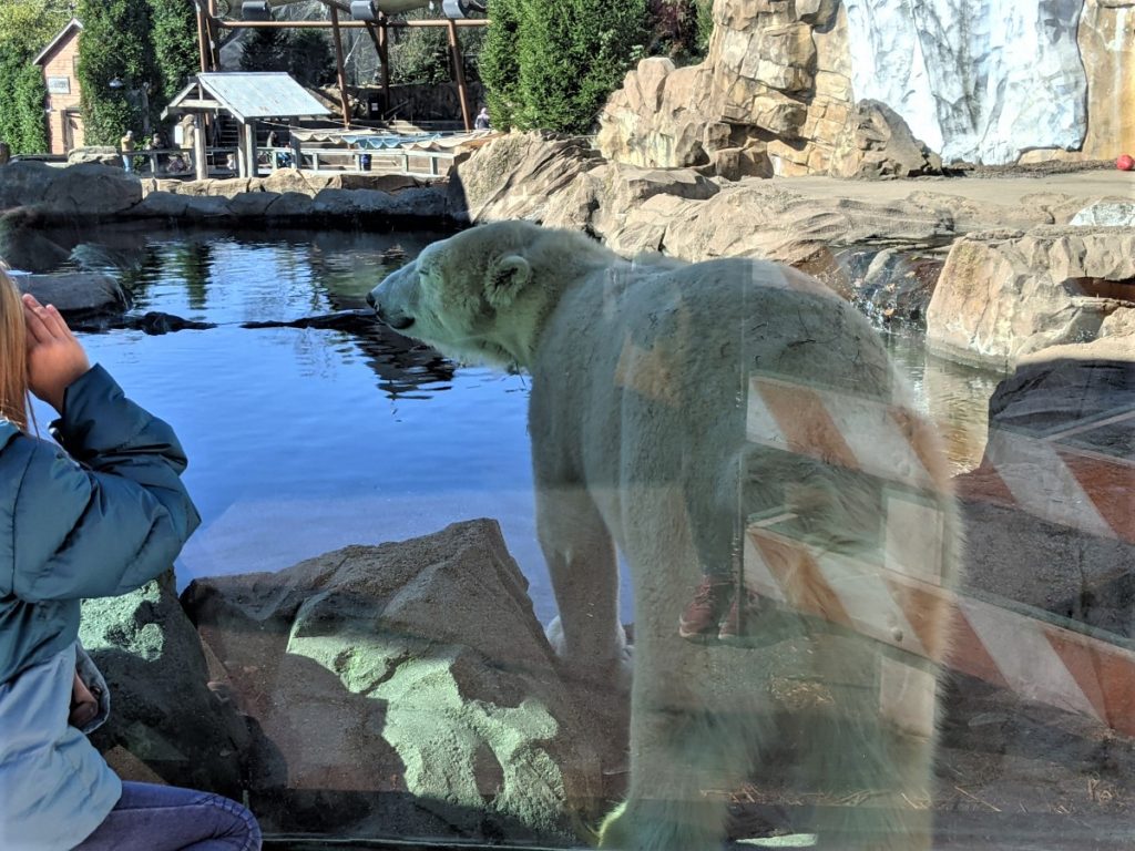 It’s with the bears that you really get the feeling of being VERY close to the animals. The grizzly bear is huge! There are thick big panes of glass separating you from the bears but they can definitely see you!
