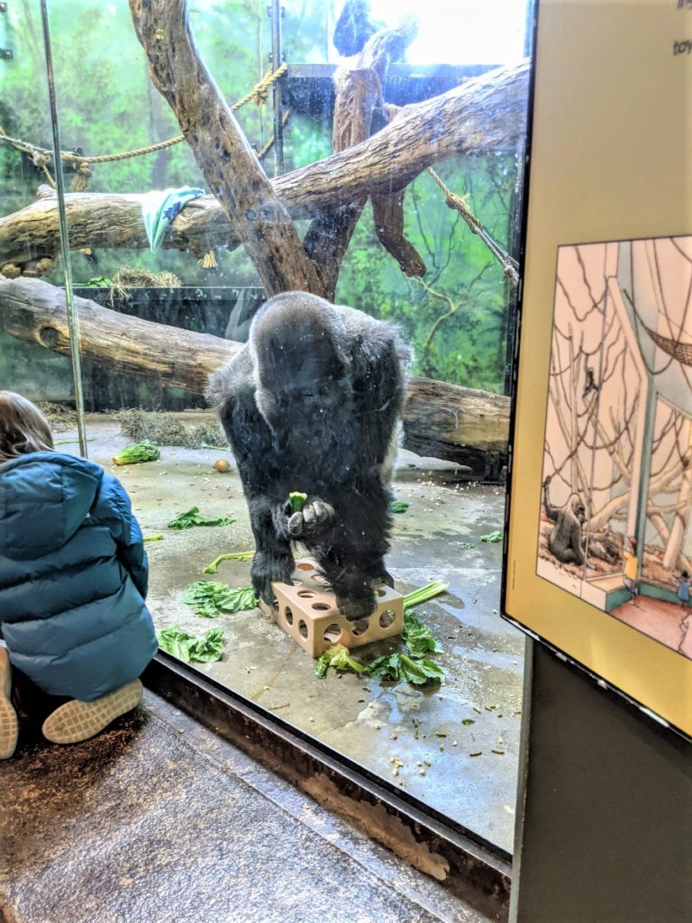 The rest of the zoo is the African section. First, you come to the gorilla forest, a lush area just to walk around. The gorillas can be indoors or out here. On my visit, they were all indoors because of the cooler temps.