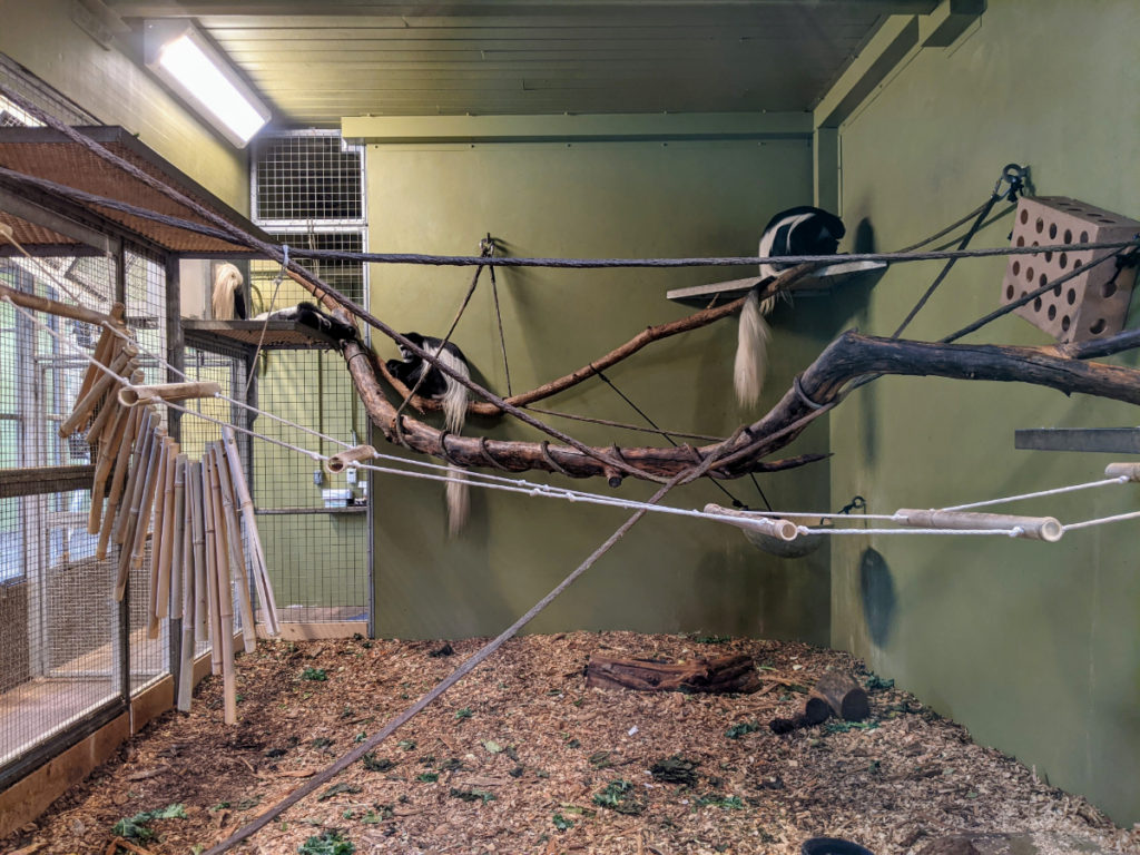The restaurant is adjacent to the colobus monkey enclosure. If you sit outside on the patio with your food, you can watch them leap around. They weren’t out and about during my visit but you can go into their house and see them there.