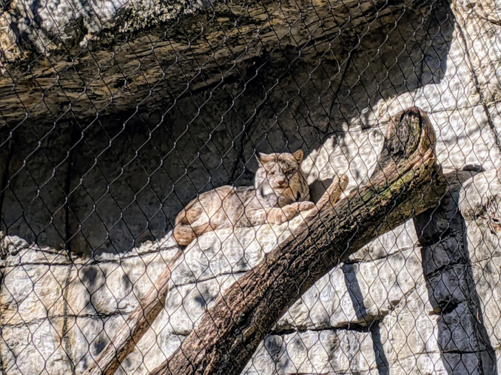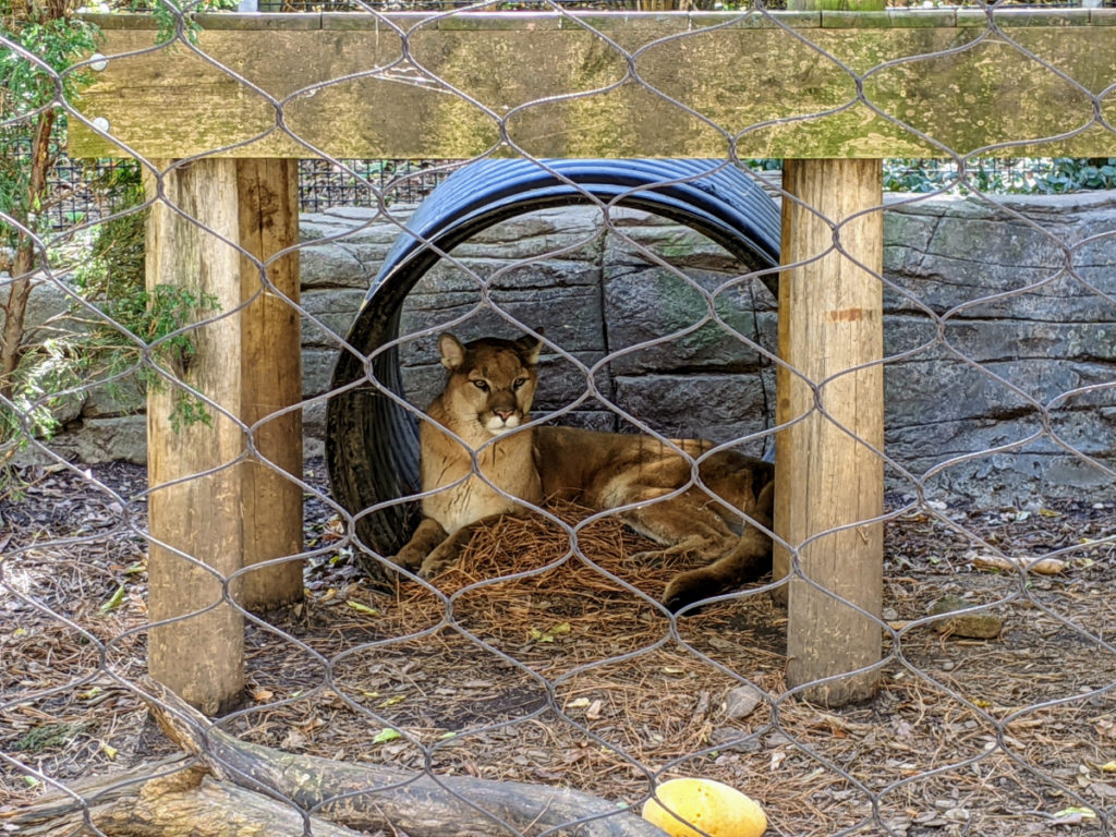 Past the lake, there is a turnoff with “Cats of the Americas” featuring a fluffy-footed lynx and a puma. Inexplicably, there are also bald eagles here!
