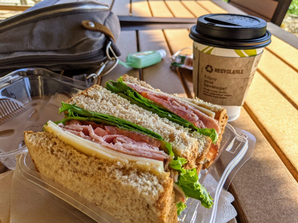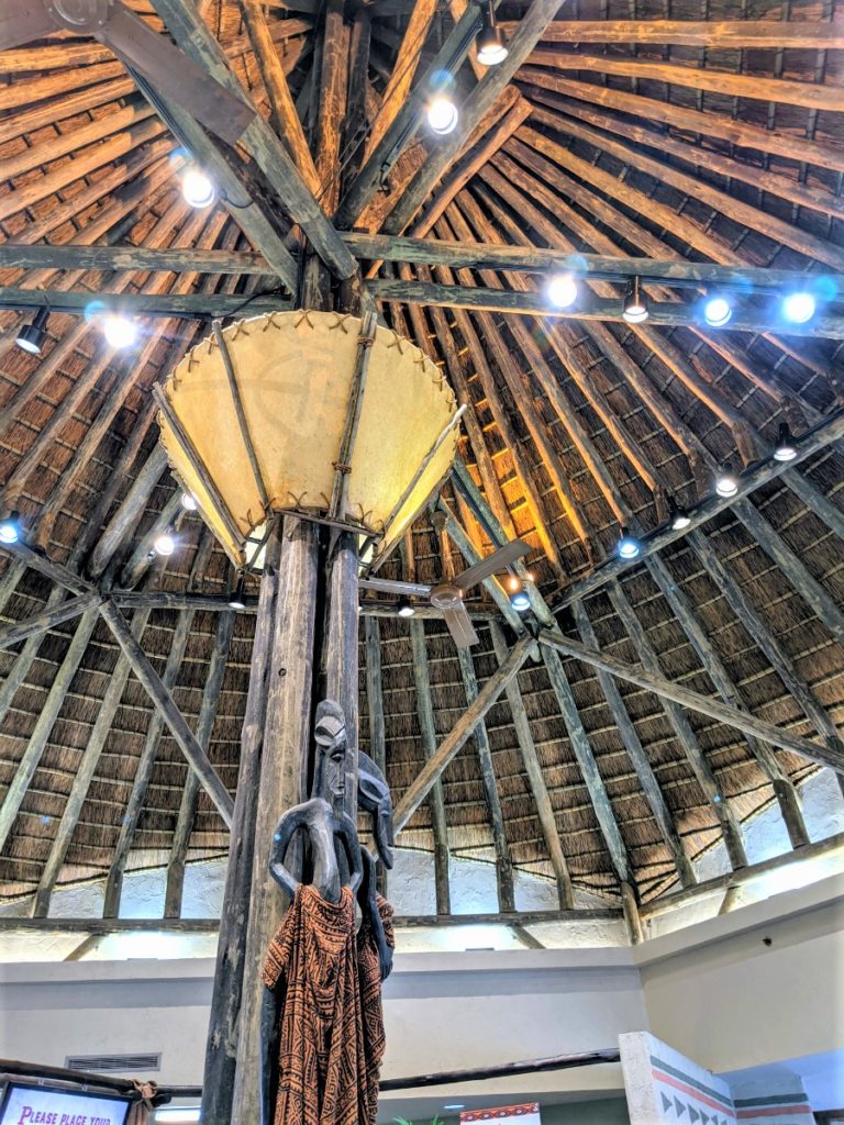 Next is the big African Outpost restaurant, the only restaurant that stays open year-round. During Covid, it’s mostly grab-and-go items and a few soups. I had a hot chocolate and a sandwich, and it was pretty good!