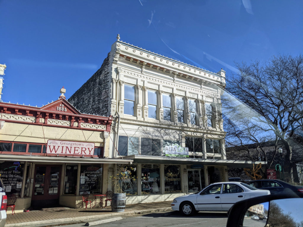But Georgetown lives up to its nickname with a stately central courthouse and surrounding streets filled with fantastic shops, restaurants, and wineries, and sculpture. And there are no laws against open alcohol containers. So it’s legal – and encouraged! – to stroll the square with a glass of wine or beer in hand.