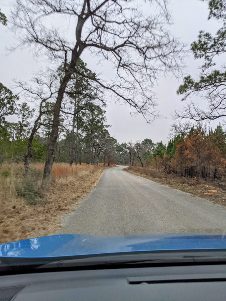 While I should have walked off my BBQ, instead I was in a mood to drive, so I drove to nearby Bastrop. I didn’t find much downtown to interest me, but there is Bastrop State Park nearby with miles of winding park road along a ridge. In fact, you can keep driving on Park Road until you reach another park, Buescher State Park. It’s a fun drive, especially in the late evening.