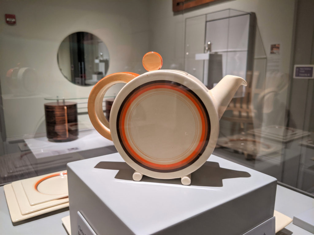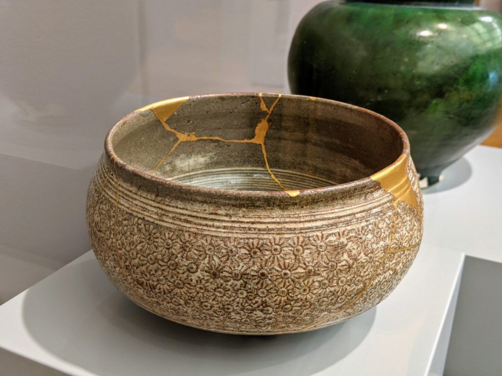 What is on exhibit is varied, from furniture and housewares to portraits and sculptures. I really like the Fiestaware, and the Japanese bowl mended with gold.