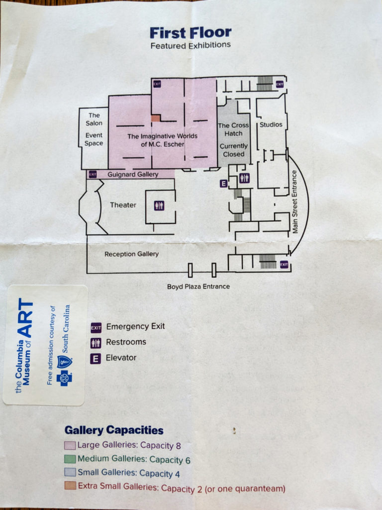 The rest of the Columbia Museum of Art collection is upstairs, via stairs or elevator. Once you’re up there, there’s really only one door to go into, but that one door leads to gallery upon gallery, which is where your map will come in handy. You want to make sure you don’t miss any!