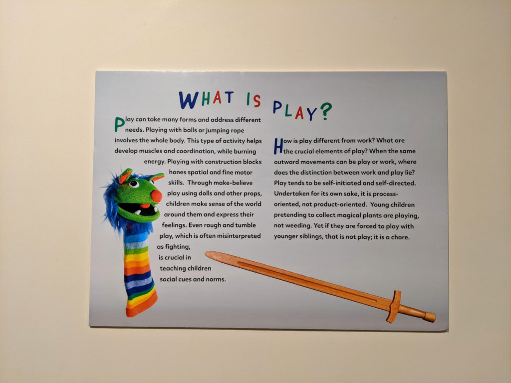 Once I made it to the 2nd floor, there was clear signage to two galleries, one at each end of the hall. The first one is an exhibit on toys and play, featuring many toys I had growing up!
