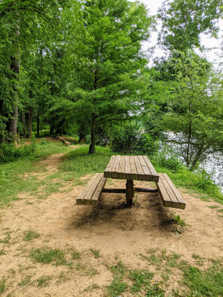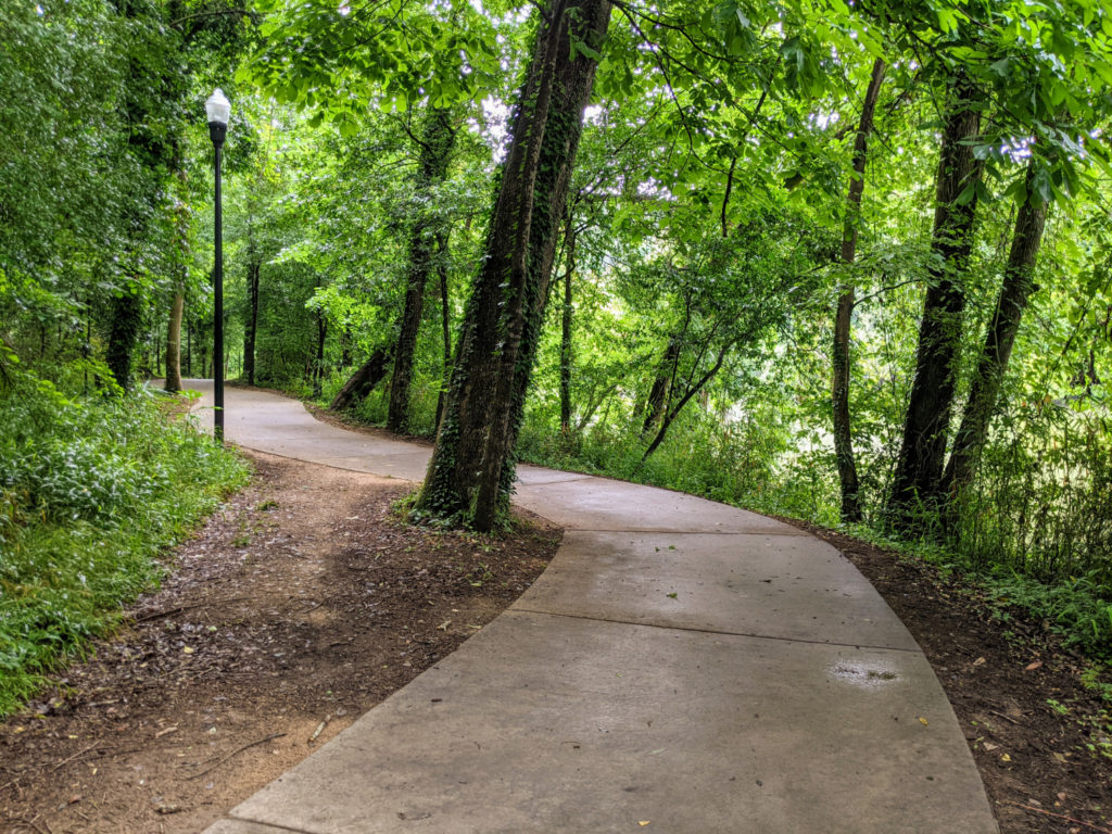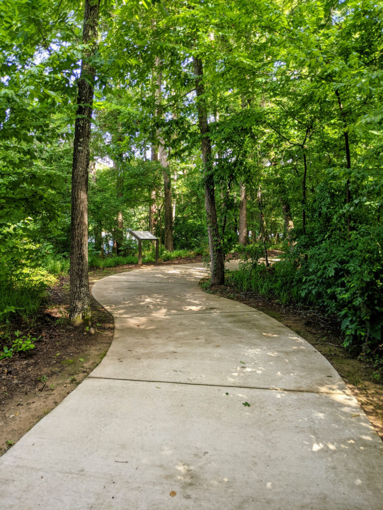There’s parking throughout Saluda Shoals Park, but for the greenway trail, I parked at the Dogwood picnic shelter where there are bathrooms. Or you can park at the very end near a boat ramp and observation deck. There are bathrooms throughout the park.