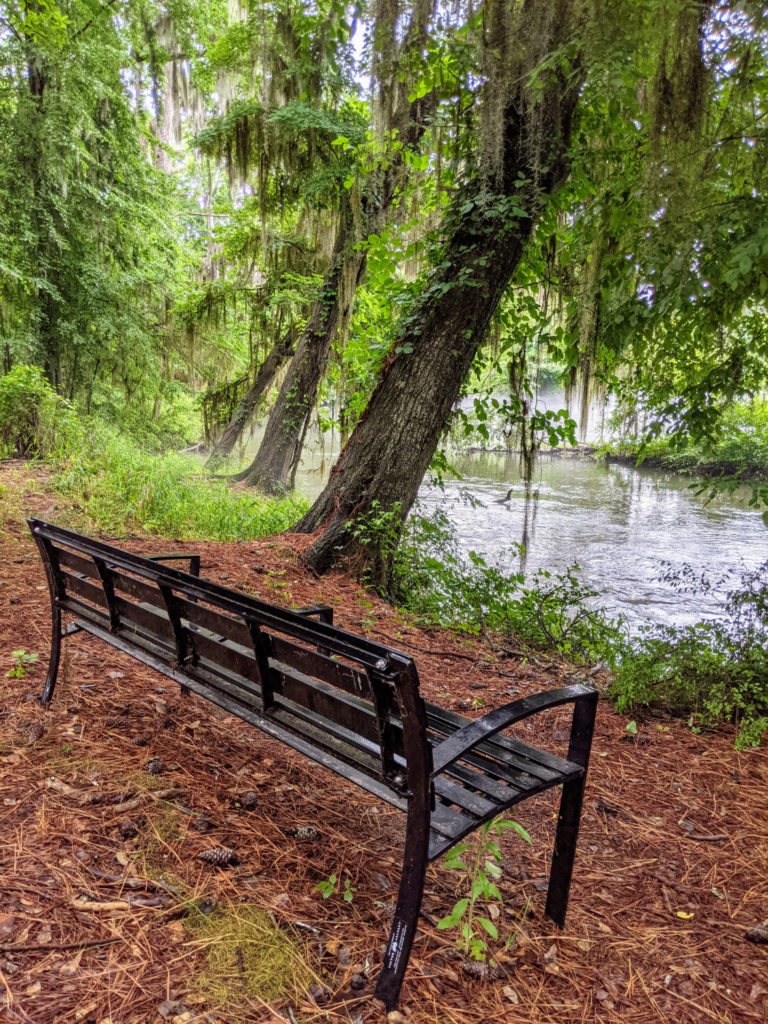 There are four parking lots and three bathrooms along the West Columbia Riverwalk. At the north end, just off Sunset Road, there’s a small parking lot at the end of Moffat Street. Look for the cute car dealership and turn down Moffat, almost parallel to Sunset. Keep going when it says “road ends.” Or try Googling “Pollo Loco Parking Lot,” which seems to work. The main parking lot and bathrooms are at a small amphitheater next to the Gervais Bridge, or you can Google “West Columbia Riverwalk Park and Amphitheater” for directions. About halfway down is a spur off to the Cayce Riverwalk Picnic Shelter on Naples Street with parking and bathrooms. Then at the south end, there are parking, bathrooms, and picnic facilities at H. Kelley Jones Park on Brookcliff Rd & Riverland Dr.