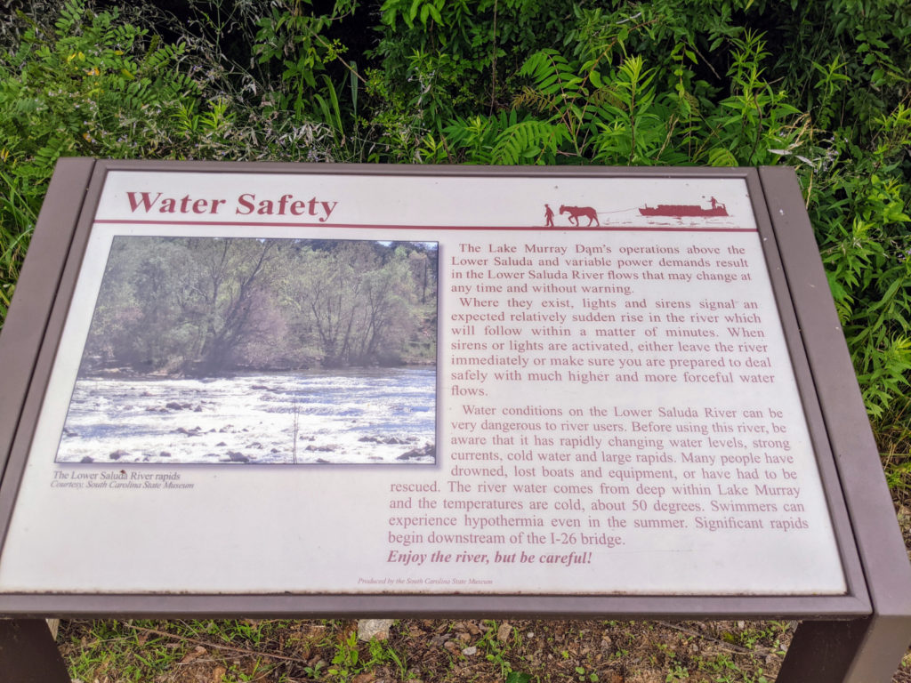 It’s a beautiful shaded trail with several places to “pull off” and sit to contemplate the river. I think it’s about a 6-mile walk round trip. But overall, it was too straight and boring in parts. In the ranking of the rest of the riverwalks, I’d slot it in between the other Saluda Riverwalk and Cayce Creek.