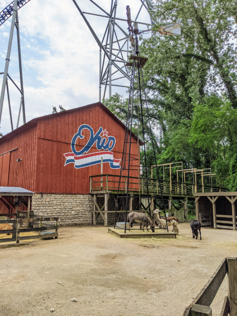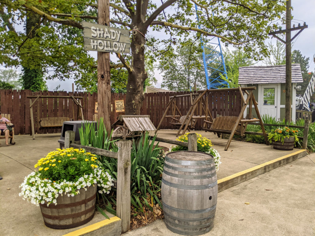 The back half of the loop is the most themed with a Pioneer/Frontier style, like just about every theme park ever. But at Cedar Point, it really feels separated from the action at the front gate (which it used to be, literally – only accessible via the train and a second sky ride.) Back here, you find a wooden fort, frontier village, rustic shops including an honest-to-goodness china shop and a candlemaker, and even a barnyard petting zoo and pony rides.