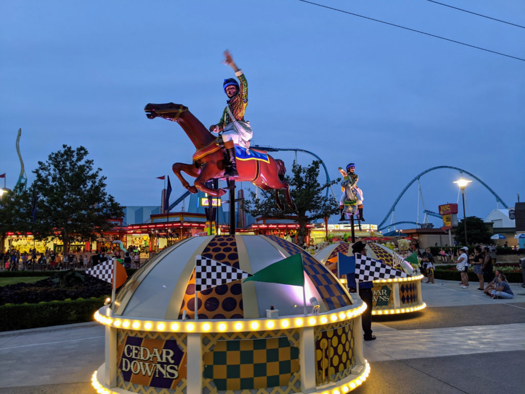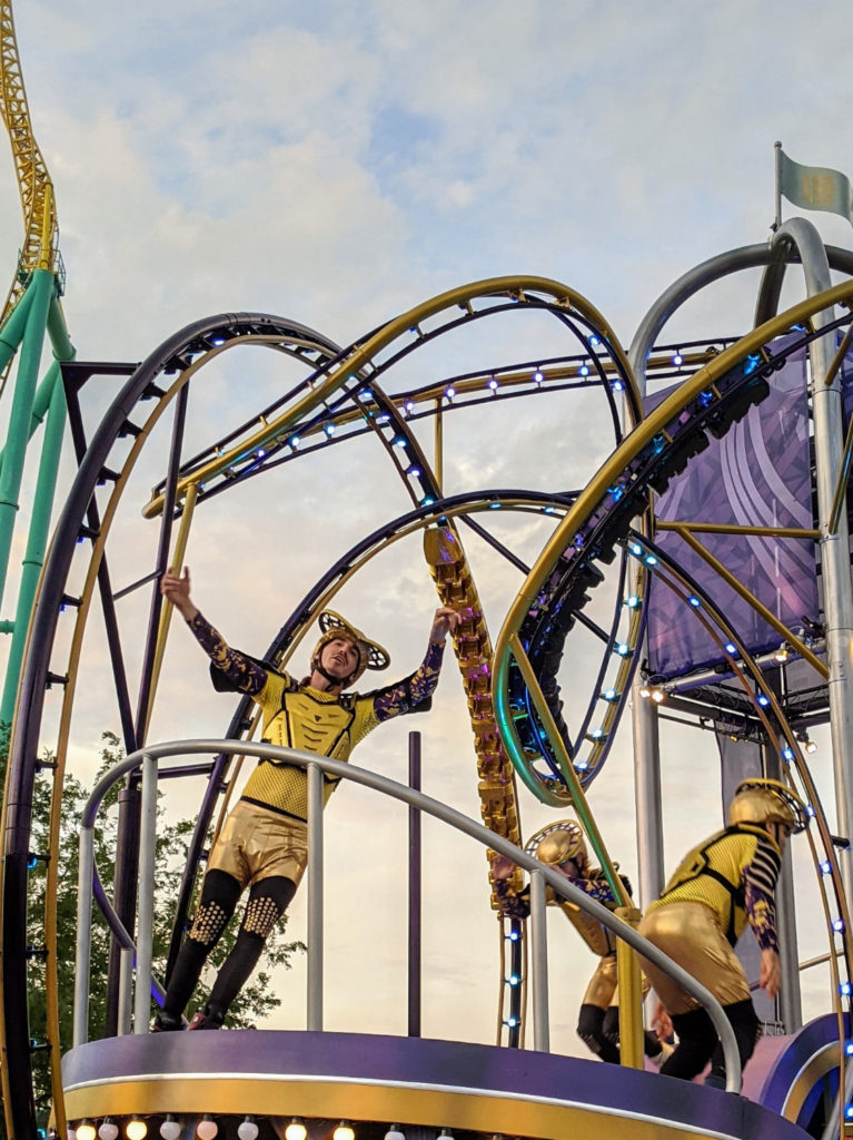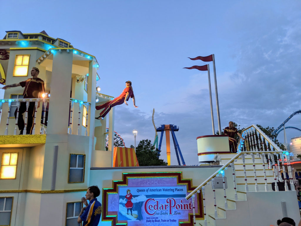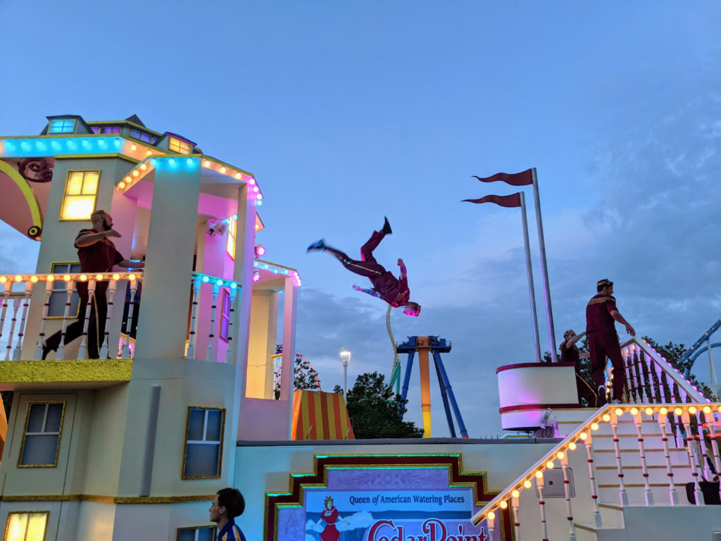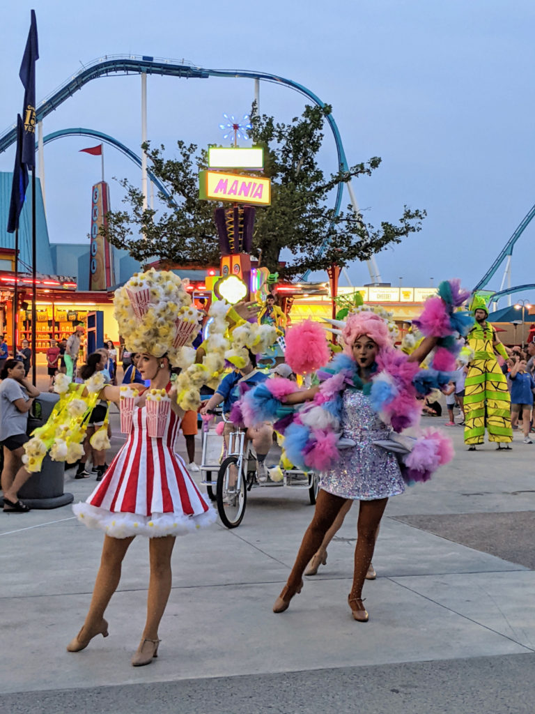 The most spectacular live entertainment was the anniversary offerings. The parade was a lot of fun, celebrating the history of Cedar Point with lots of moving parts, action, and cast members who interact with the audience. I really enjoyed the trampoline bellhops on The Breakers Hotel float. And another dedicated to roller coasters had inline skaters swooping all over it and around the float itself. The most unfortunate part of it (in my opinion) were the periodic dance breaks. Even on busy days, there just weren’t *that* many people watching the parade at any given time, so the actors mostly danced with themselves. I liked that I could walk up and watch it without having to stake out a spot ahead of time.