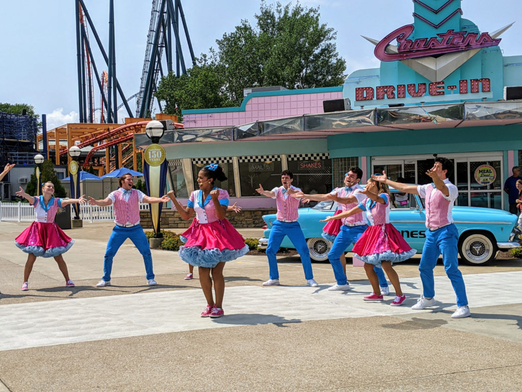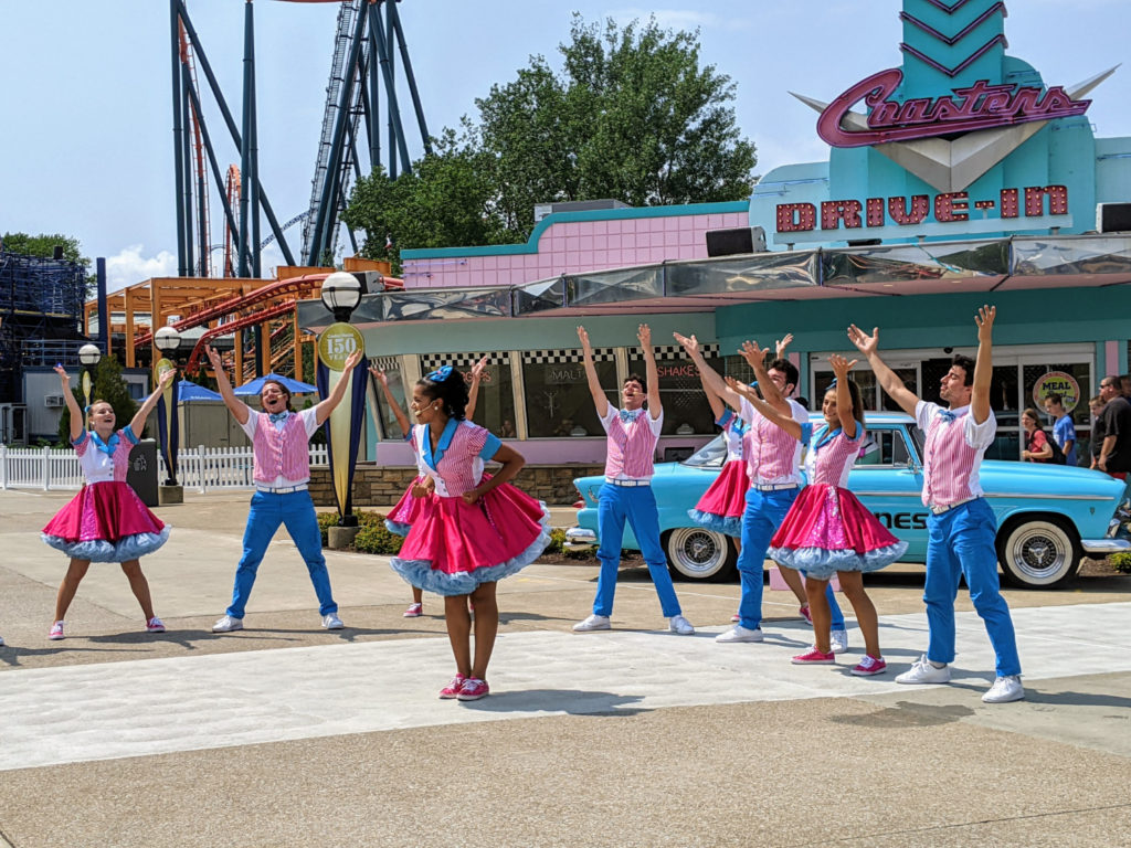 Cedar Point is the first park I visited this summer that actually has some live entertainment! And they seemed to be careful to keep it mostly outdoors. Besides the 150th anniversary parade and show, there were shows on the anniversary stage throughout the day, alternating between a kid’s Snoopy show and some dance show. I also saw most of an outdoor version of Lusty Lil’s saloon show and some sock-hop dancers in front of the 50’s diner. Everything was fun and high-energy. I’m sure there’s a lot more, but show times aren’t very obvious or easily found in the app.