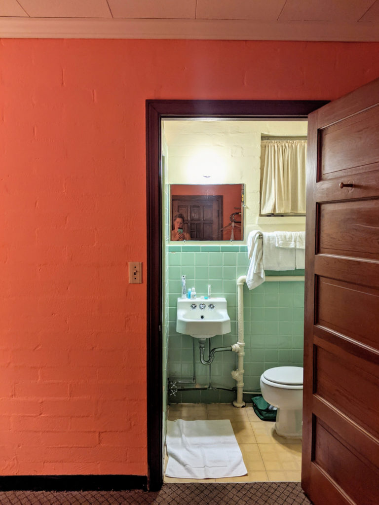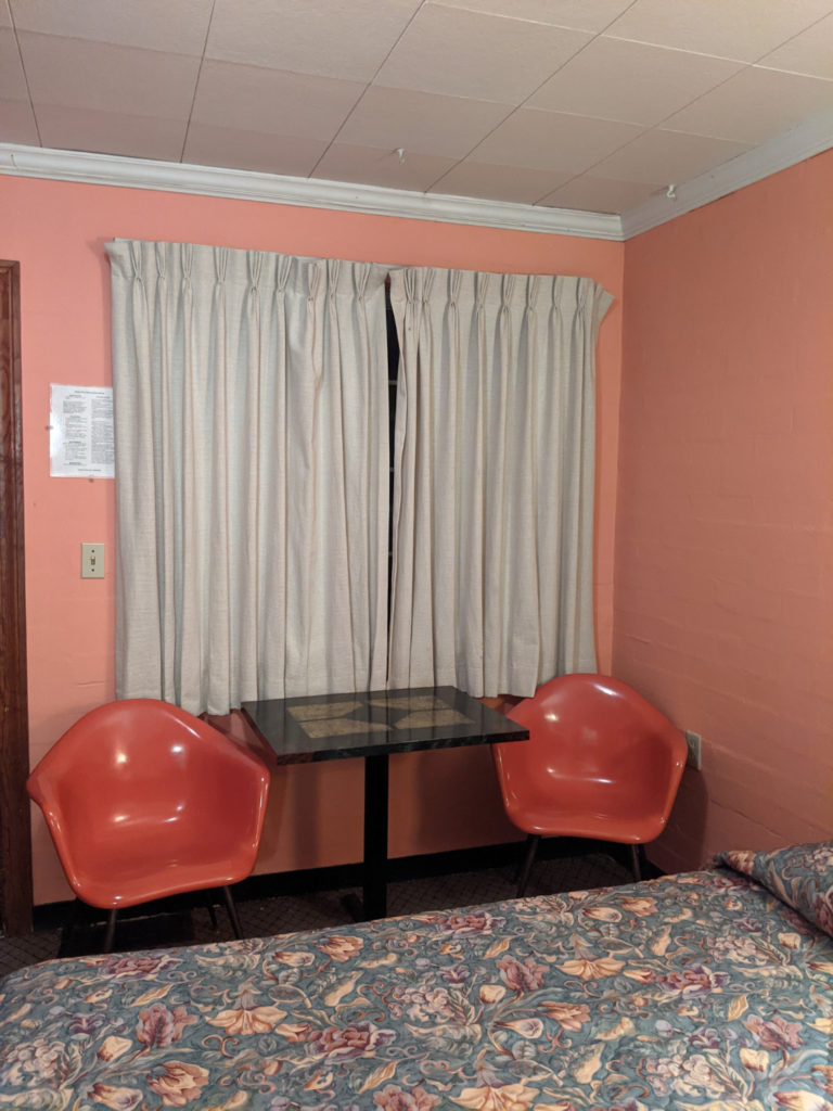 While I was driving back and forth from my abandoned house, I repeatedly passed the Maples Motel, which looked interesting and retro. When I came back through town for a one-night stay, I called and got a room for an excellent price and had a fantastic visit! It was perfectly comfortable, and I had a very nice chat with the owner in the morning. (Though there is a train nearby – take earplugs.) He also provides a fairly decent breakfast with a bowls of fruit, granola/breakfast bars, and a box of donuts and coffee. I was super impressed for a $70 night’s stay. They don’t have an online presence and don’t show up on discount sites. You have to book directly.